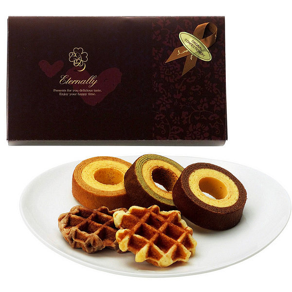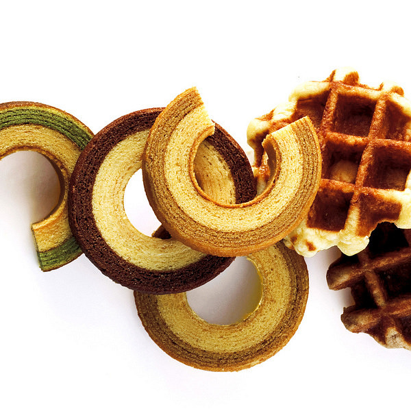 内容 : 2色クーヘン (バニラ/モカ, バニラ/抹茶, バニラ/ココア), ワッフル (プレーン, ココア) 各1