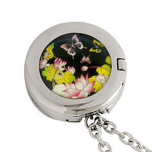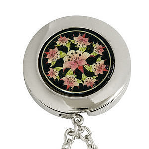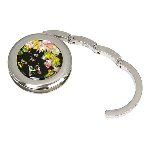 ちょっとした時に便利なミラーが付いた貝殻細工がキレイな丸形のバッグハンガー。フックがボディに収まる人気のタイプです。チェーン付きなので、バッグの持ち手に付けられます。また、バッグの中に入れる時も、付属のポーチで他の荷物を傷つける心配もありません。