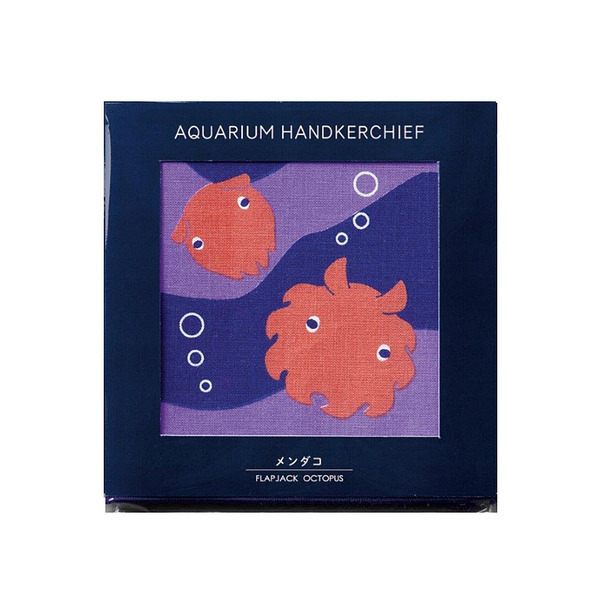 水族館の小さな水槽展示の中を泳いでいるような窓空きパッケージのハンカチです。 和晒し生地とドビー織を組み合わてんじのせた二重仕立てで、吸湿性と通気性に優れた自然素材です。