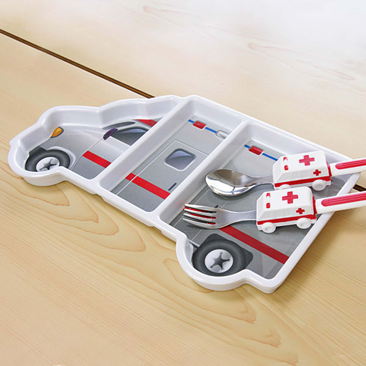 フォーク&スプーンもプレートと同デザインでとってもキュート♪パトカーのスプーンがお口に食べ物を運んでくれる!フラットな形状で洗いものもカンタンです★