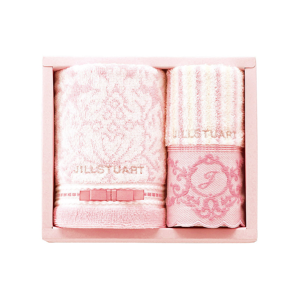 ジルスチュアートらしい、優しいカラーのピンクをベースに、キュートなデザインのタオルです。フルフィーコットンを使用することで、ボリューム感やソフトな肌触りを実現!ピンクのギフトボックスで贈り物にも最適です。