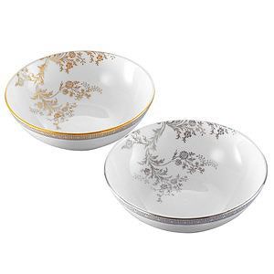 プラチナとゴールドの繊細なレースを纏ったマルチソーサーのペアセットです。透き通ったスープを入れると、器の魅力で上質で贅沢なスープにしてくれそうな逸品です。