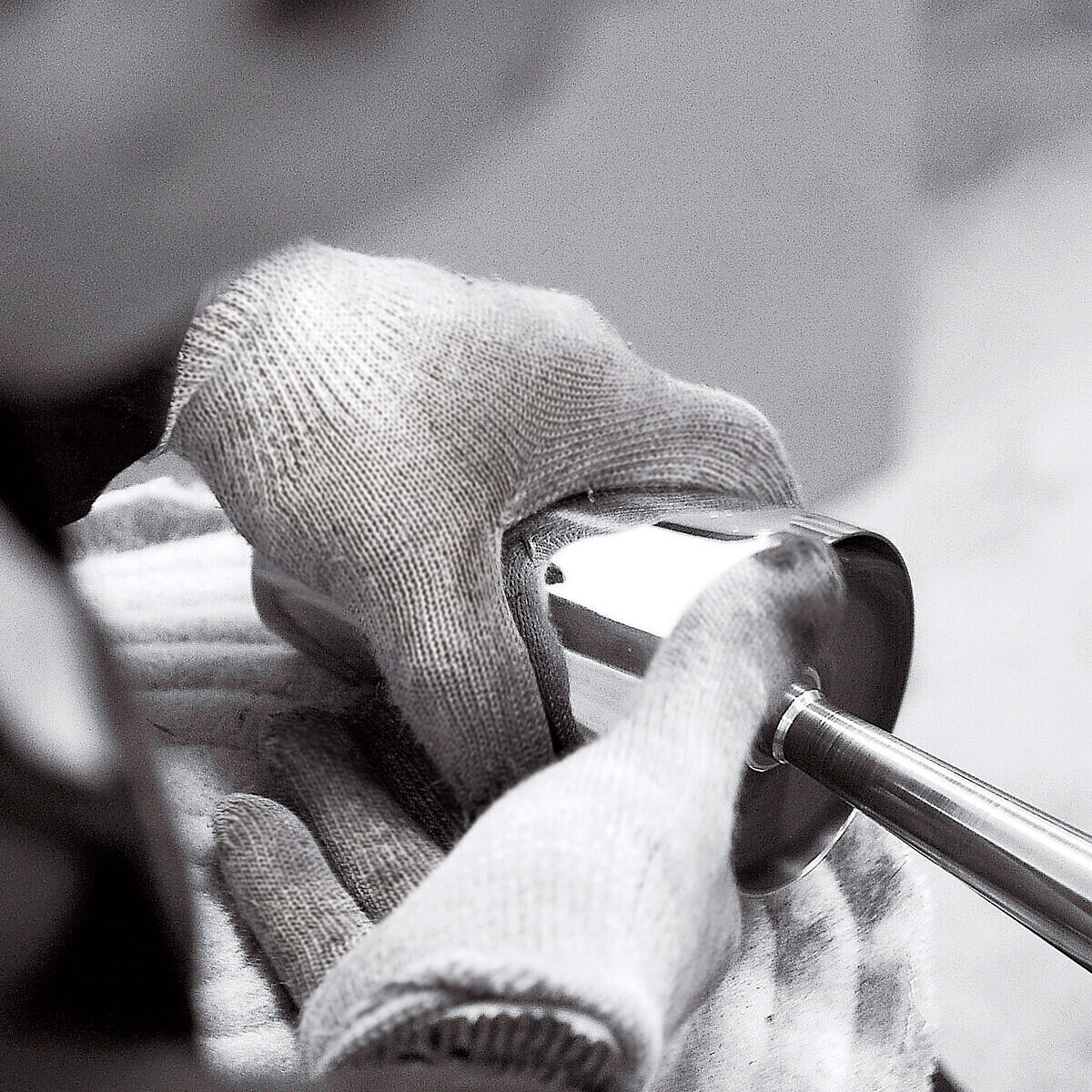 越後平野のほぼ中央に位置する新潟県燕市。ここは古くからの農村地帯でありながらも金属加工の集積地として独自の産業を発展させてきました。江戸時代初期から和釘作りを始め、時代の流れの中でヤスリや鎚起動機、キセルなどを生産し、現代では金属製ハウスウェアが主要の産地になっています。県下有数の工業地帯でありながら、ひとつの製品を完成させるまでの各工程が分業によって行われることが多いのも燕市のものづくりの特徴。家族を中心とした町工場がいくつも点在し、それぞれが得意とする工程をこなしています。「燕研磨ファクトリー」はそんな燕市の町工場の職人たちにより作り上げられています。