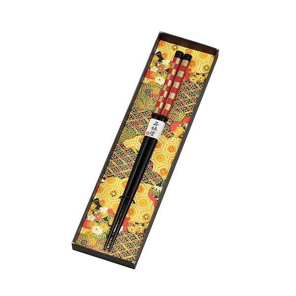 商品 : 箸 (長さ約22.5cm) x 1膳 材質 : 木製 (ポリエステル塗装 / 若狭塗) 箱サイズ : 約 6.5 x 25 x 1.5 cm MADE IN JAPAN