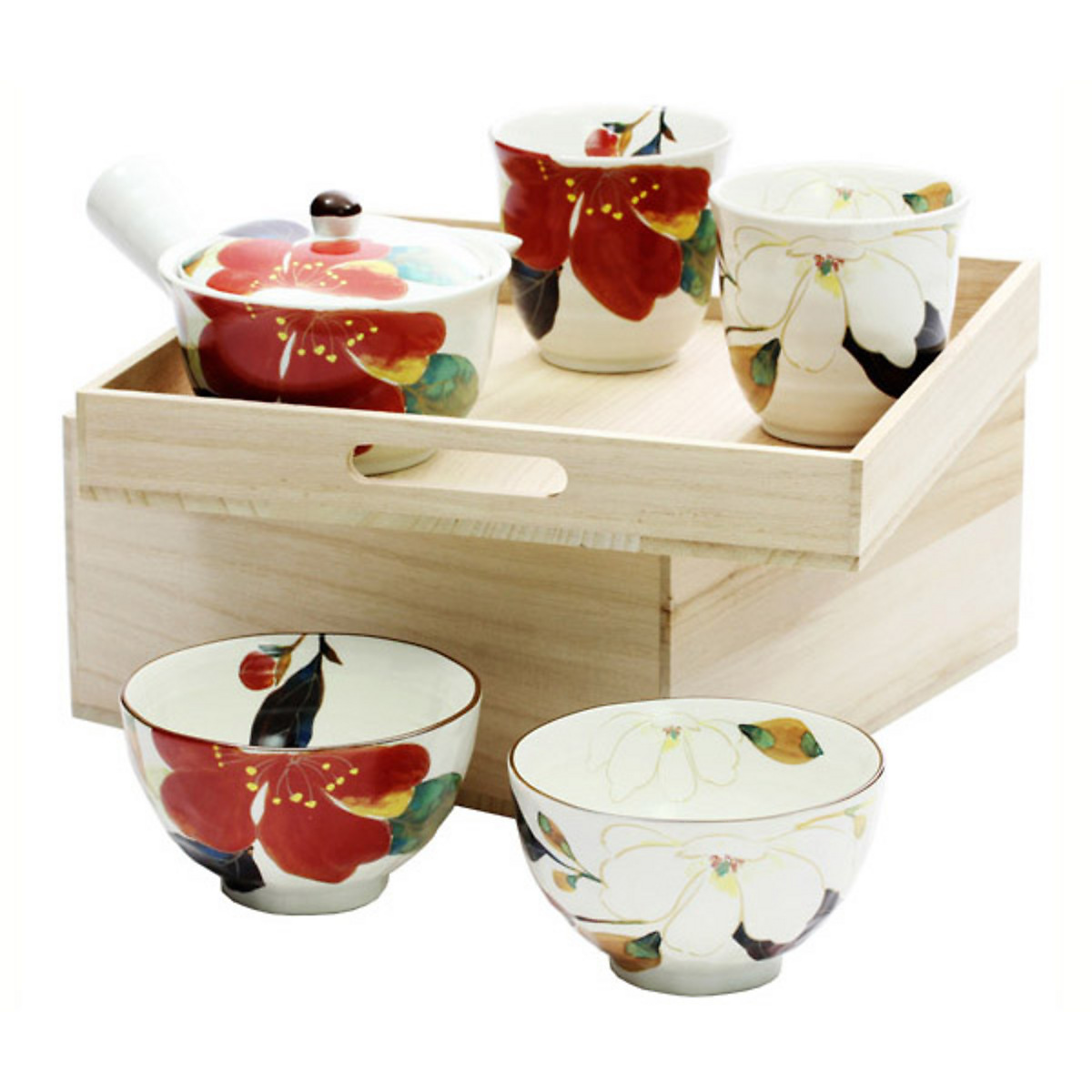 五草花が織り成す美しい回廊紋様の煎茶揃です。