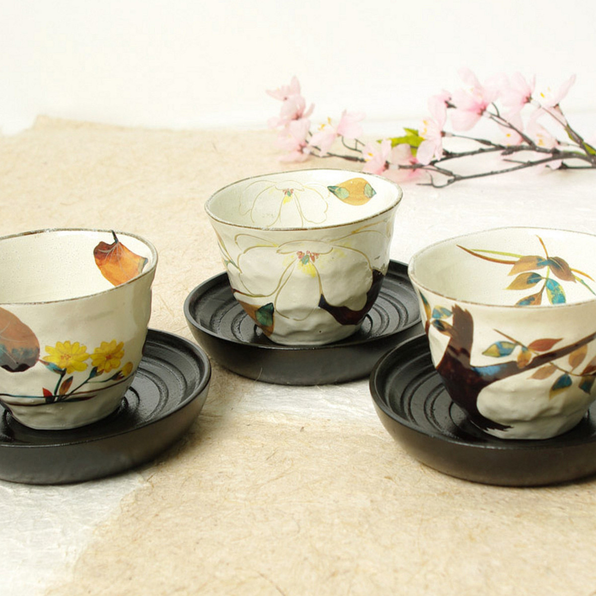商品 : 碗 (約Φ9xH6.7cm) x 2, 茶托 (約Φ12.5xH2.5cm) x 2 材質 : 陶磁器 (美濃焼) 箱 : 約26 x 23 x H10 cm 重量 : 約1,700g MADE IN JAPAN