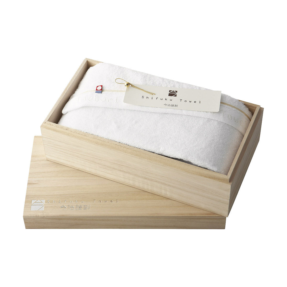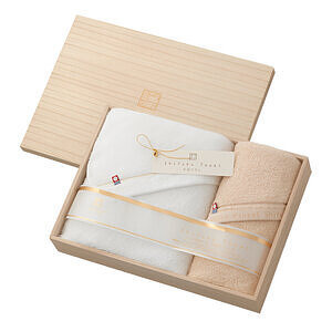 商品 : バスタオル (約60×110cm), フェイスタオル (約34x75cm) 各1, 木箱入 材質 : 綿 100% 箱 : 約 35 x 25 x 8 cm, 約0.8 kg 認定番号 : 第2017-1188号 MAIDE IN JAPAN