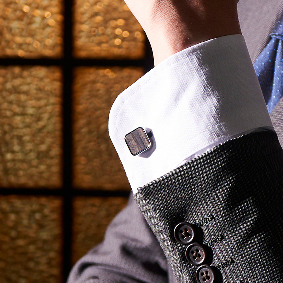 ウォールナットとシルバーの真鍮の異種素材を組み合わせた、シンプルでお洒落なカフスです。個性的でお洒落でありながら、ビジネスシーンでも、カジュアルな場面でもお使いいただける万能なデザインです。 女性がジュエリーを身につけるように、男性もアクセサリーで個性とお洒落を演出したいもの。高級感あるギフトボックス入りなのでプレゼントに最適です。