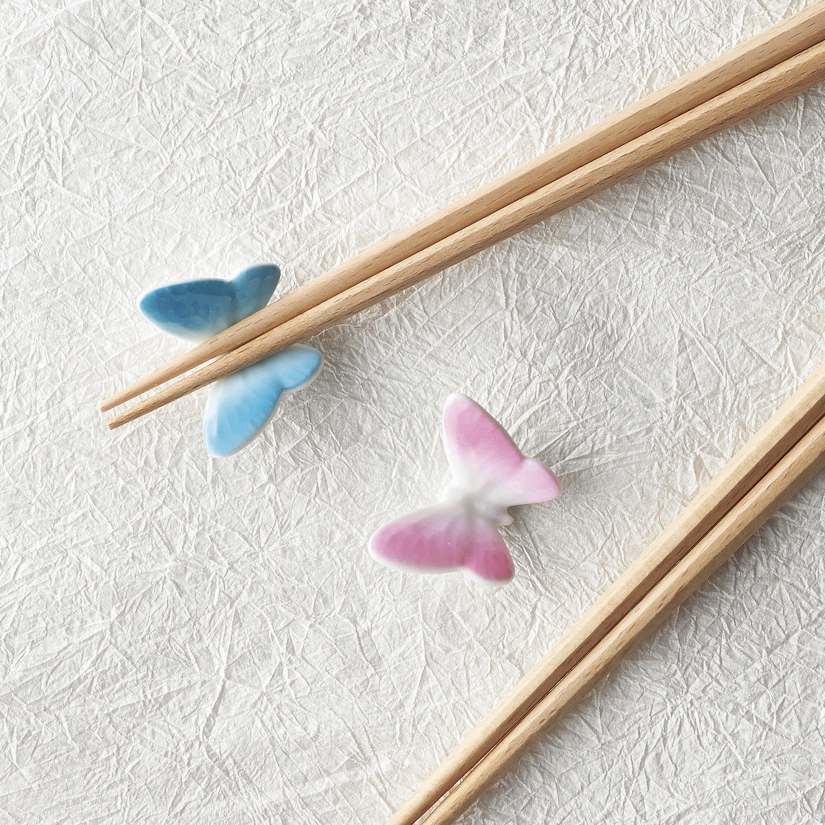 愛知県瀬戸市の職人さんが一つ一つ丁寧に手吹きで色を付けた蝶の形の Floyd の箸置きセット。食卓を華やかに彩ります。