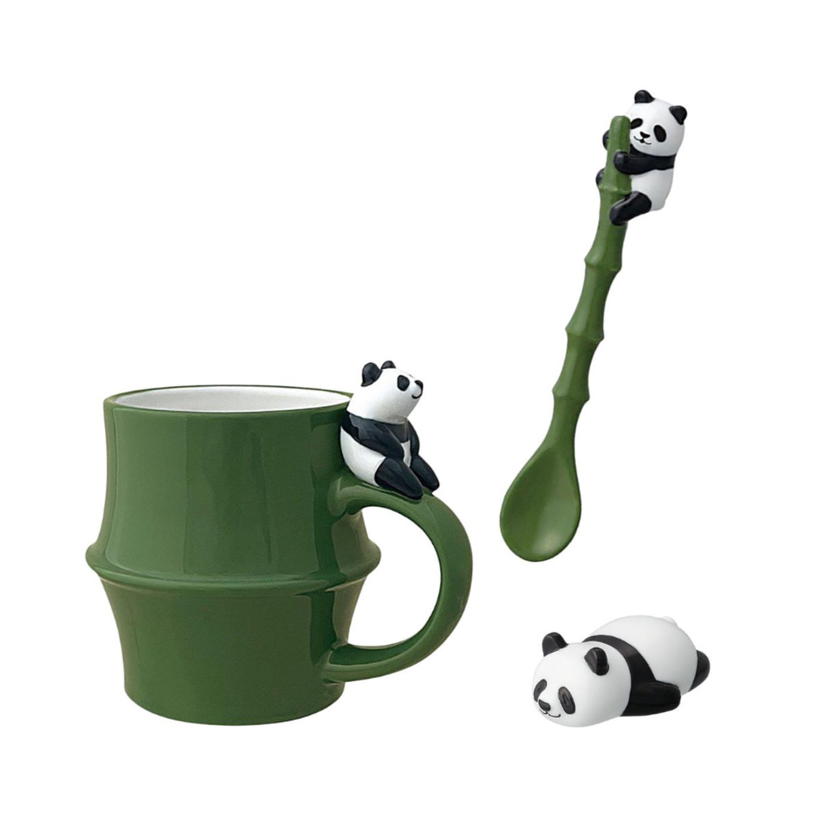 商品 : 竹パンダマグ のんびり(約φ90xW120xH100mm), パンダスプーン よじよじ竹(約W22xH135xD22mm), パンダ箸置き ぐで~(約W37xH22xD58mm) × 各1 材質 : 陶製 MADE IN CHINA