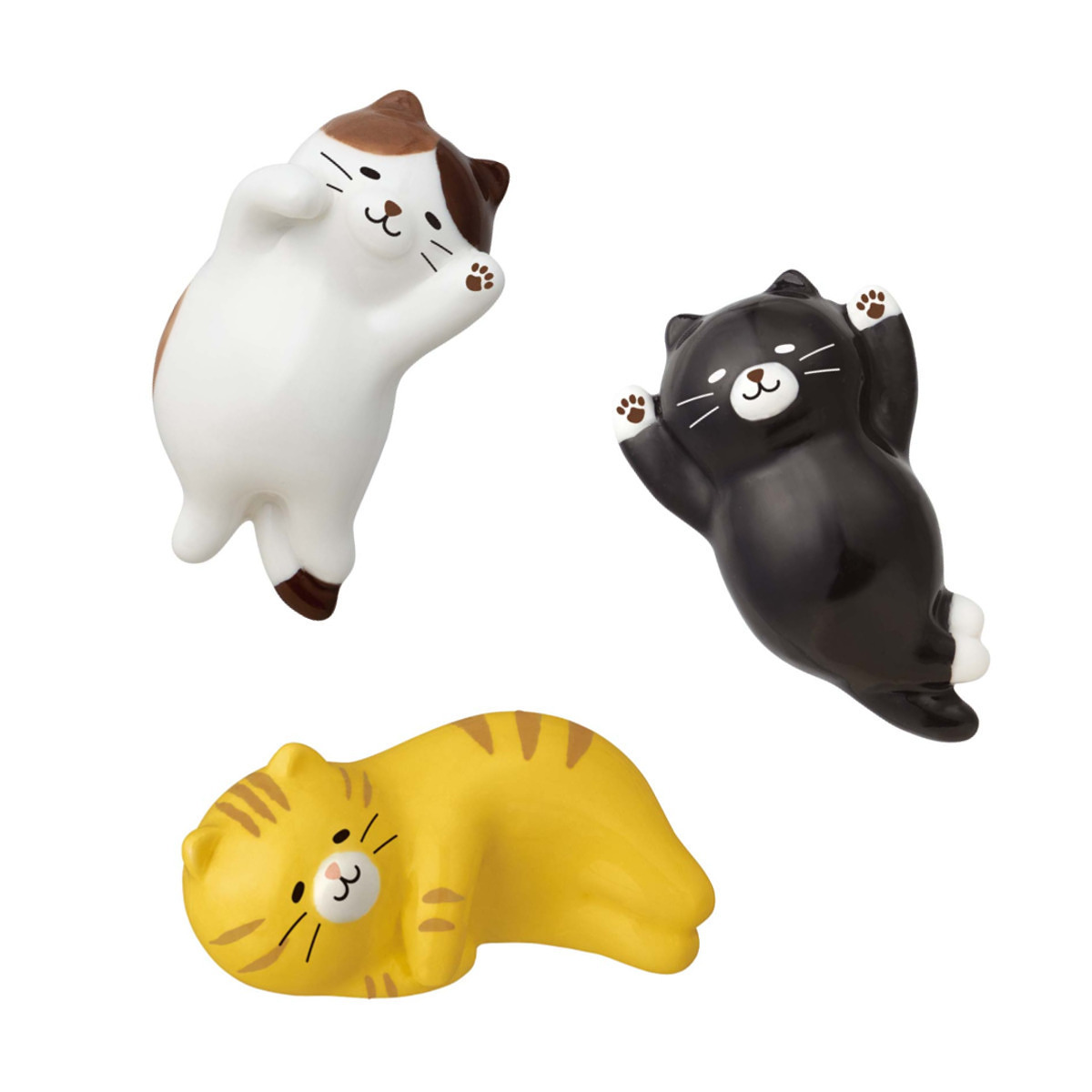 サイズ : 約 30 × 55 × h18 mm (みけ), 約 48 × 28 × h22 mm (とら), 約 34 × 56 × h16 mm (くろ), 材質 : 陶器 MADE IN CHINA