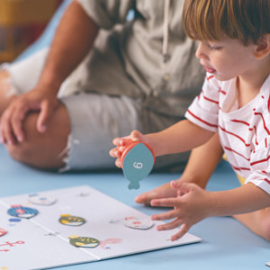 紙製のボードにマグネットシートのさかなを並べたら、マグネットキャッチャーを握ってさかなをピタッとキャッチしましょう。目的のピースを狙って捕まえ、マグネットから取り外すことで目と手の協調性を育みます。