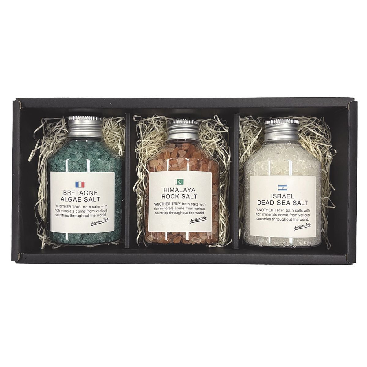 商品 : バスソルト x 3 (ブルターニュアングソルト 190g, ヒマラヤロックソルト 180g, デッドシーソルト 155g, オーストラリアマーメイドソルト 175g, イタリアンソラリウムソルト 180g, ジャパンアコウソルト 190g 各1) 原産国 : フランス (ブルターニュアングソルト), パキスタン (ヒマラヤロックソルト), イスラエル (デッドシーソルト), オーストラリア (オーストラリアマーメイドソルト), イタリア (イタリアンソラリウムソルト), 日本 (ジャパンアコウソルト) ボックス : 約 W229 x H80 x D239 mm 重量 : 約 1445 g
