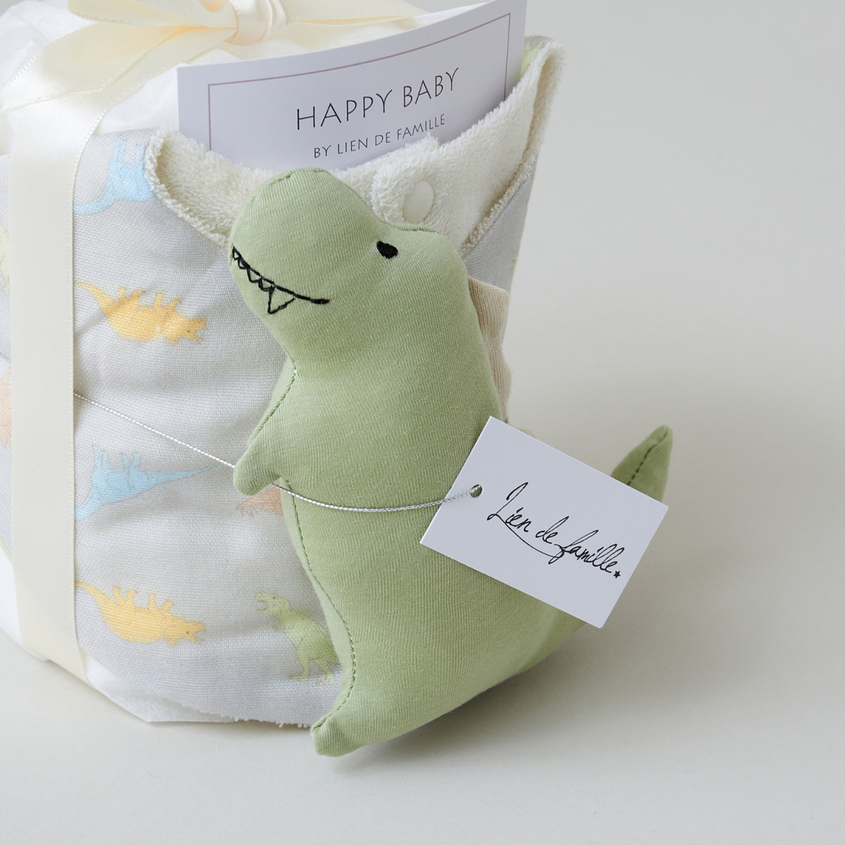 【ベビーケーキ】 セット内容 : おむつ x 5, スタイ x 1, ラトル x 1 サイズ : 約 W30.5 x H11 cm (スタイ本体), 約 W6 x H13 cm (ラトル) スタイ首回り : 約 28 cm 材質 : 綿 100 % (スタイ表), 綿 80 %, ポリエステル 20 % (スタイ裏), 綿 100 % (ラトル) ボックス : 約 Φ130 x 210 mm 対象年齢 : ~ 6 カ月 MADE IN JAPAN