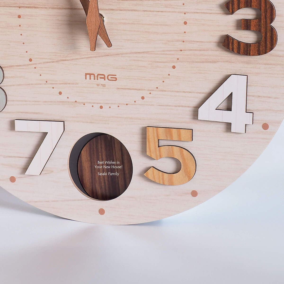 お部屋の印象を決める壁掛け時計。きっとお気に入りになる、お部屋に合わせやすいシンプルでスタイリッシュなデザインの時計を集めました。時計を見るたびに思い出し、嬉しい気持ちになっていただきたいから、名前や日付など記念のメッセージを入れて、+メモリアルの意味を持つ特別な時計を贈ることができます。
