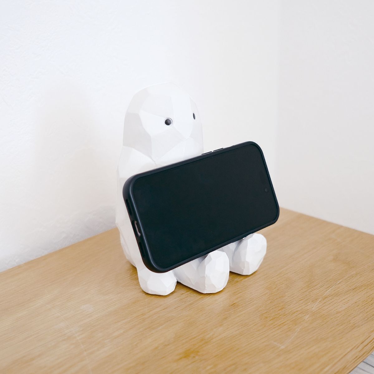 ポリゴン風のフォルムで人気のスオーラシリーズに、イエティがやってきました。こちらをじっと見つめる姿に癒される、愛らしさ満点のマネーバンクです。イエティは前面にスマホを立てかけることもできます。