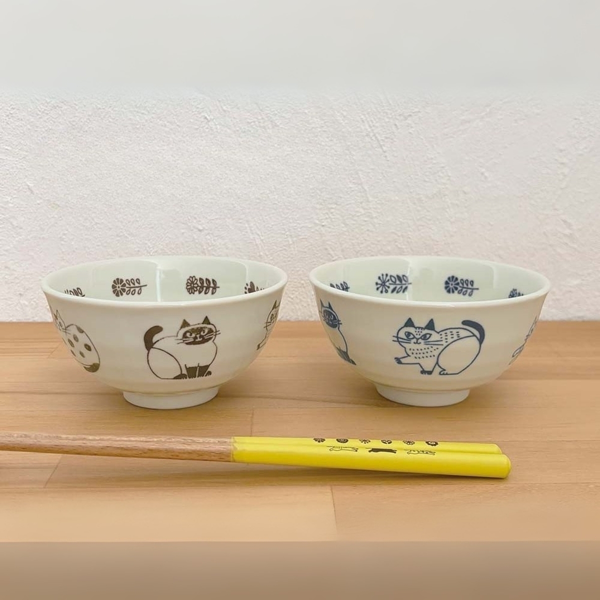 fikalyckaのお茶碗ができました。女性が持ちやすい小ぶりなサイズです。かわいい猫たちと一緒の食事はいつもよりご飯が進んじゃうかも?