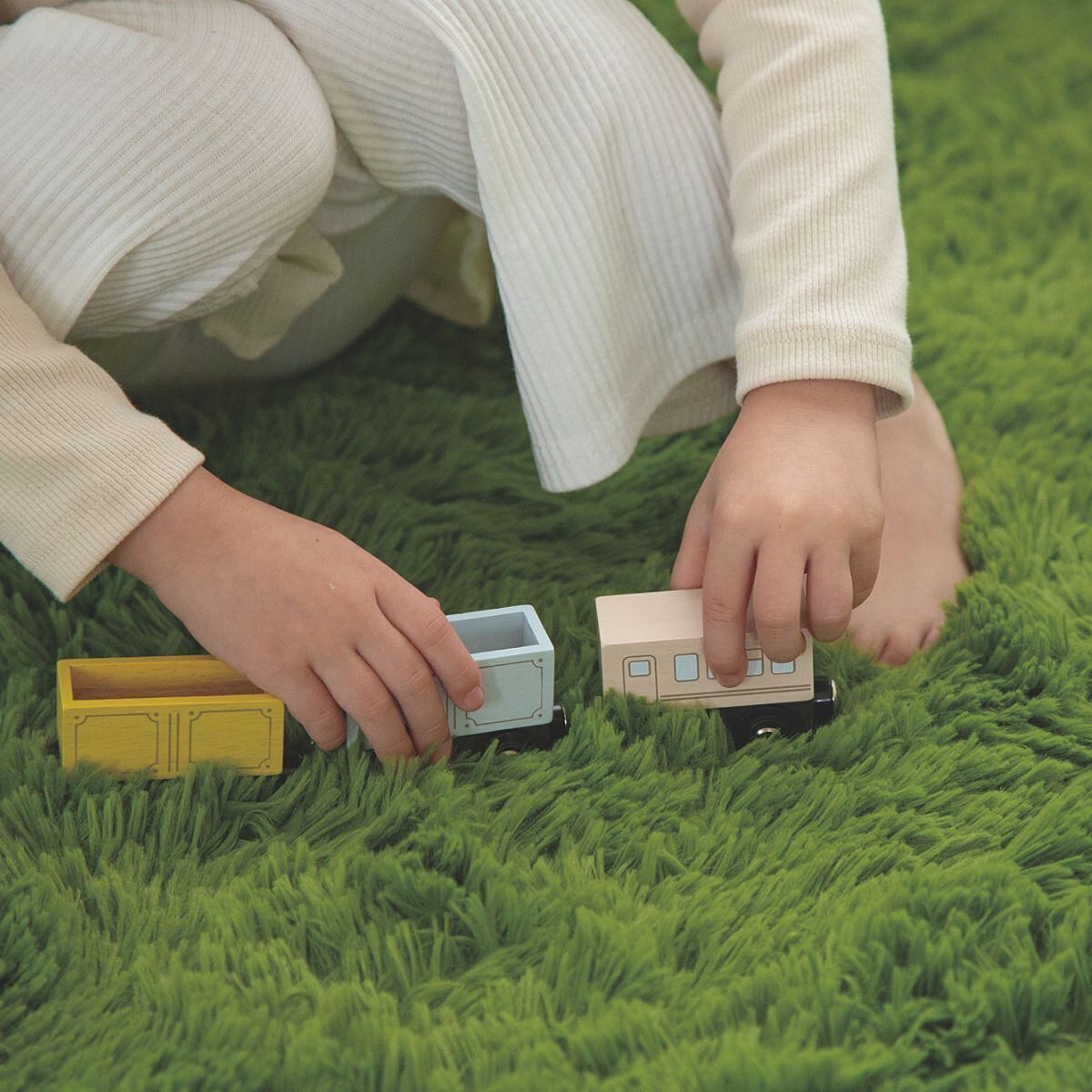 木製レールで一番普及している40mmに対応しているので、他社製レールでも走行可能!電車コレクションが増えても一緒に遊ぶことができ遊びの幅が広がります。くるまセットも同じ規格なのでレールに乗ります♪