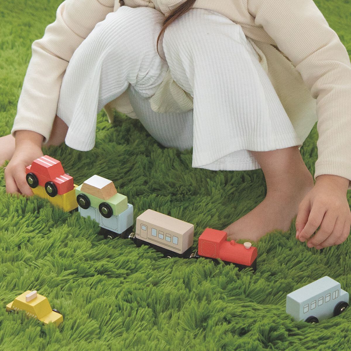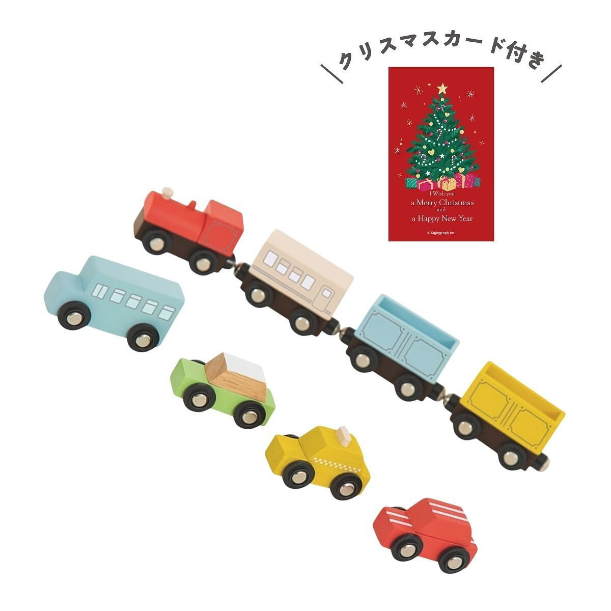 電車好きにもクルマ好きにも喜ばれるおもちゃです。色とりどりの乗り物が、磁石で「ピタッ!」とくっつく不思議な感覚にワクワク♪