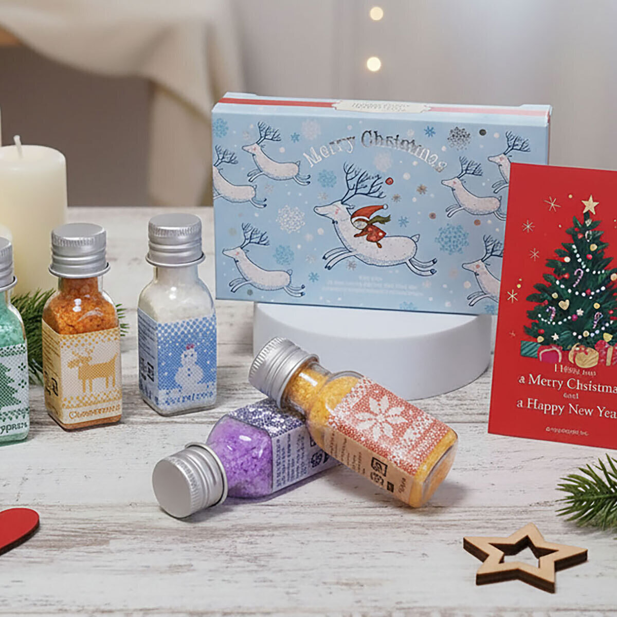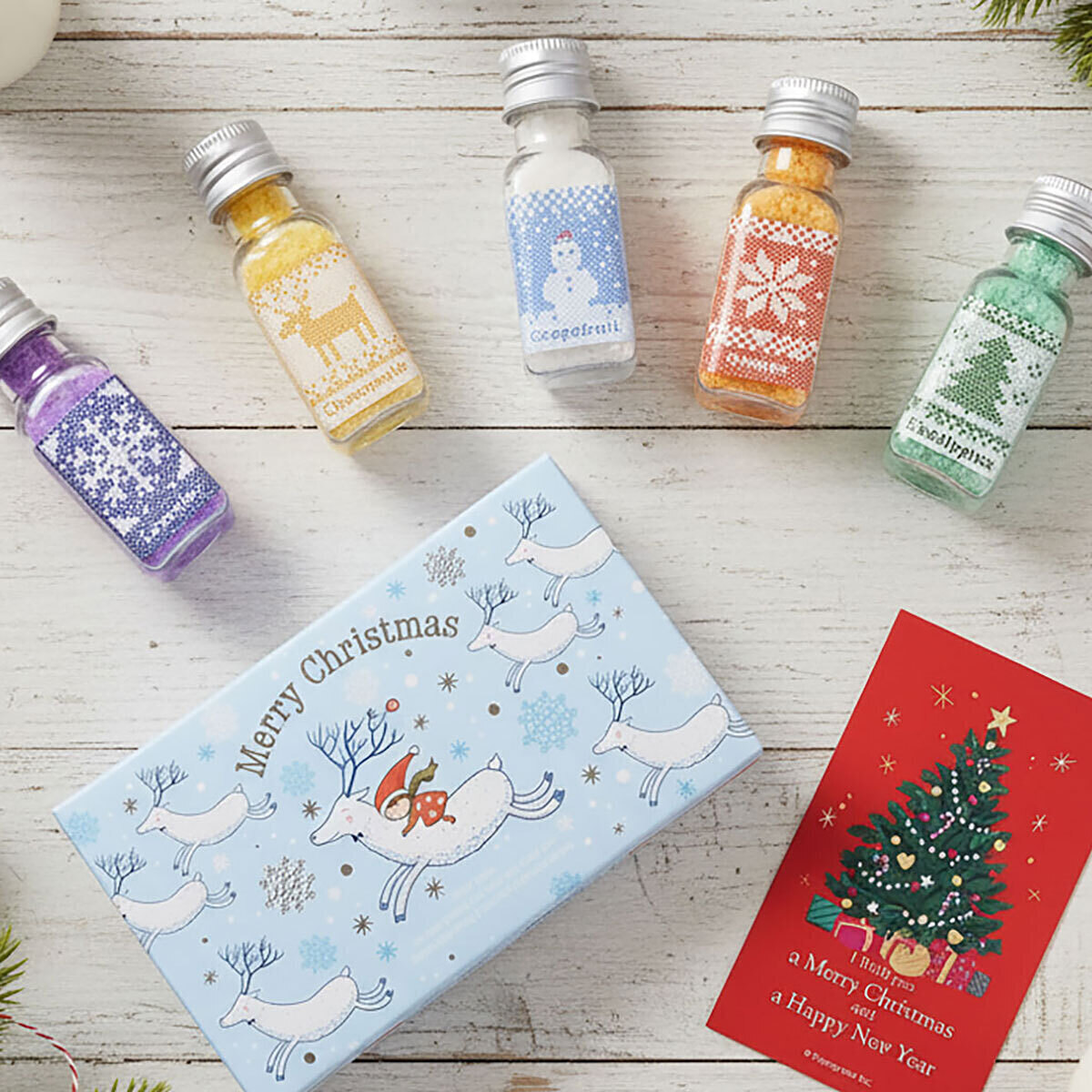 ノルディック調デザインのボトルは並べるだけもオシャレで、カラフルなルックスはクリスマスのワクワク気分を盛り上げてくれます。クリスマスムードを盛り上げる限定ギフトパッケージでお届けします。