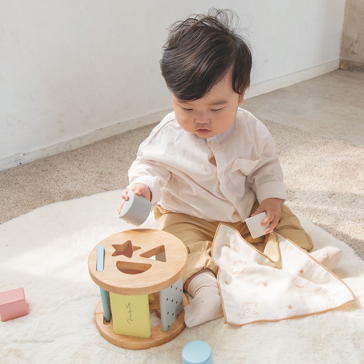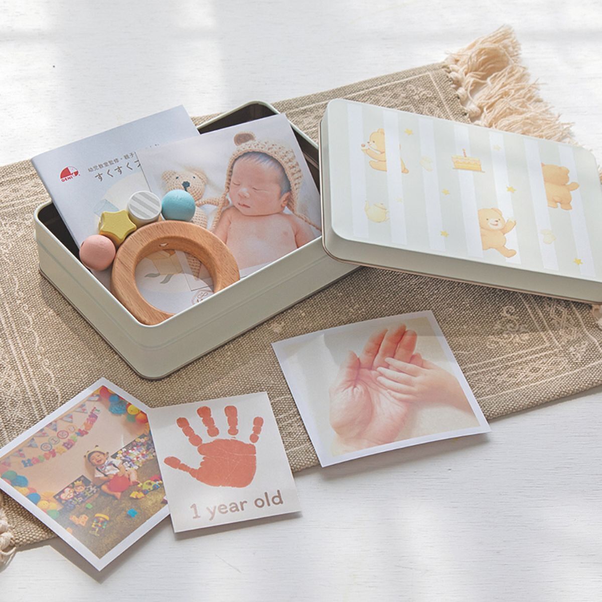 宝箱を開けるようなわくわくが詰まったギフトボックス。親子で楽しめる5つのアイテムをセットにしました。今だけの特別セット。数量に限りがございますので、お早めのご注文がおすすめです。 ・にっこりくまさんのハンドパペット ふわふわ素材にやさしく包まれて、ポケットにおもちゃを入れてお宝さがしも♪絵本と合わせて、おしゃべりごっこも楽しめます。 ・パステルカラーの木製型はめボックス シンプルな形だから、「できた!」の達成感をたくさん味わえます。お子さまの「考える力」や「手の動き」をやさしく育みます。 ・オリジナルオーガニックガーゼハンカチ かわいいくまさん柄のオリジナルガーゼハンカチ。実用的なアイテムですが、実は手遊びやごっこあそびにも大活躍の万能アイテム。おもちゃと組み合わせて楽しめます。 ・すくすくブック 絵本のお話を楽しんだあとは、発達や知育遊びのヒントもぜひご覧ください。おうち時間がもっとやさしく、あたたかくなります。 ・メモリアルボックス くまさんのデザインがかわいい、思い出をしまっておける特別な箱。へその緒ケースや育児日記、小さなおてがみも大切に保管できます。 赤ちゃんと過ごす毎日が、もっと愛おしくなるようなギフトセットです。出産祝いや1歳のお誕生日にぜひ。