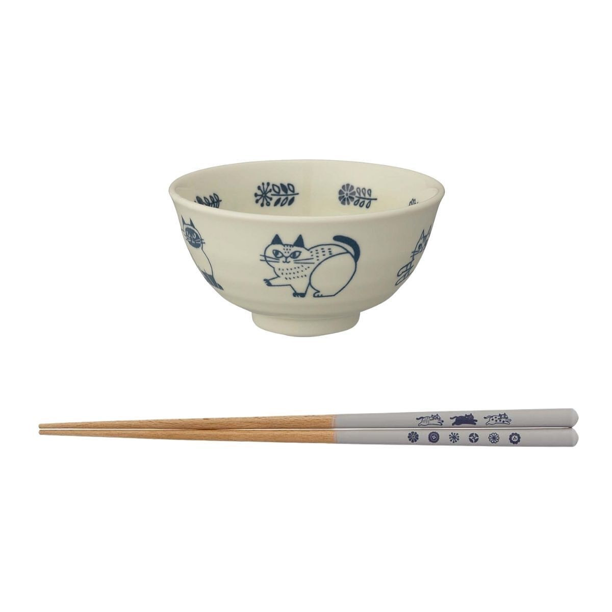 fikalyckaのお茶碗とお箸のセットです。かわいい猫たちと一緒の食事はいつもよりご飯が進んじゃうかも?
