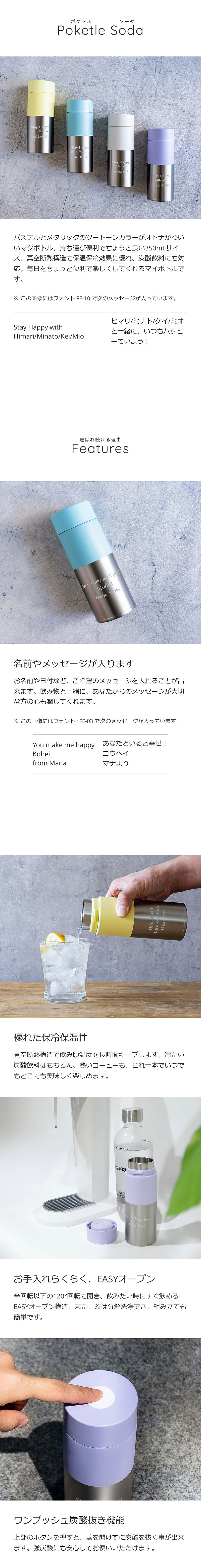 ママと一緒に頑張って手作りしてくれたバレンタインチョコのお返しは、ママとお揃いの名前入りマグボトル。パステルカラーの " おとなカワイイ " デザインだから、背伸びしたいお年頃の女の子にはきっと喜んでもらえるはず。名前とそれぞれに贈るメッセージ入りで、ちょっとしたお出掛けにも二人で持って行けるね。炭酸飲料対応で、保温保冷もバッチリだから、大きくなってもずっと便利に使えそう。