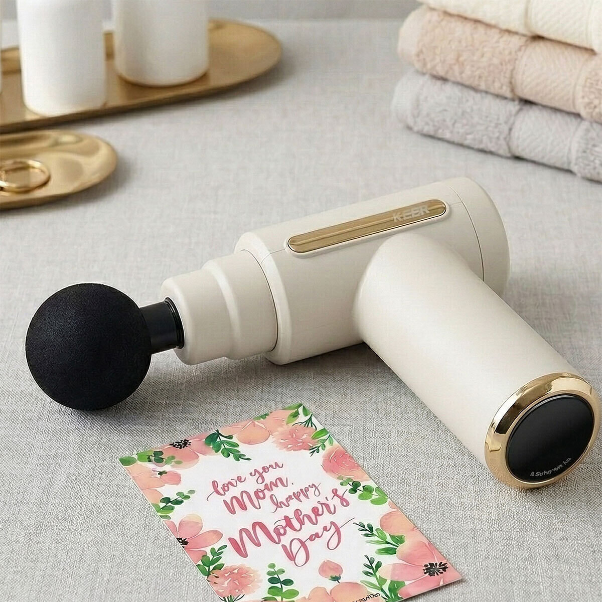 自宅でのリラックスタイムや仕事の合間にも気軽に使えるコンパクトサイズのマッサージガンです。強力な振動で筋膜を刺激しコリや疲れをしっかりケア。振動の強さは6段階で、用途に応じて選べる4種類のアタッチメント付きなので気分や部位に合わせた最適なケアが可能です。