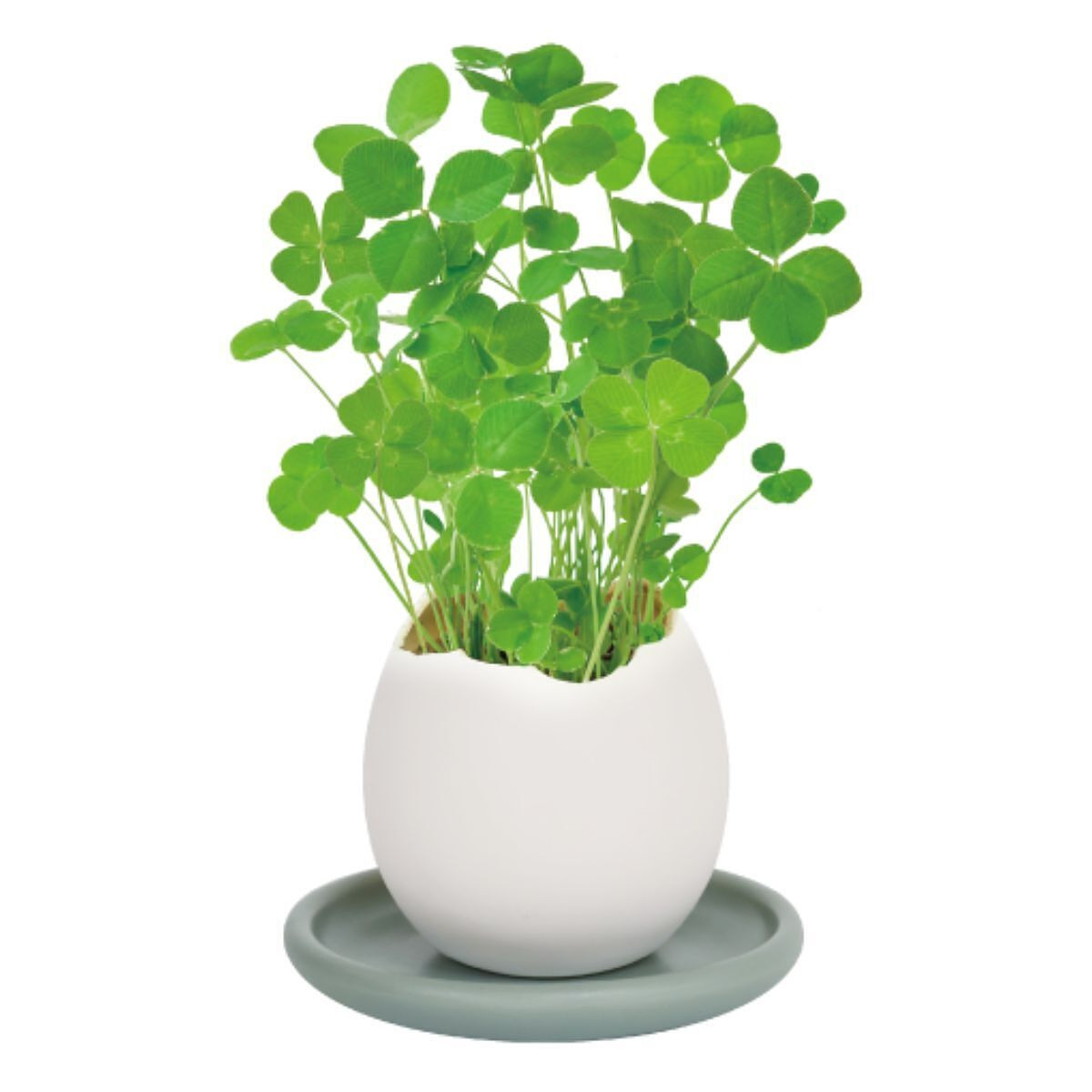 まるで本物のたまごのようなeggling。 たまごは陶器でできていて、中には種と土がセットされています。 上部をスプーンなどでコンコンと割って水をあげるとかわいい芽が出てきます。