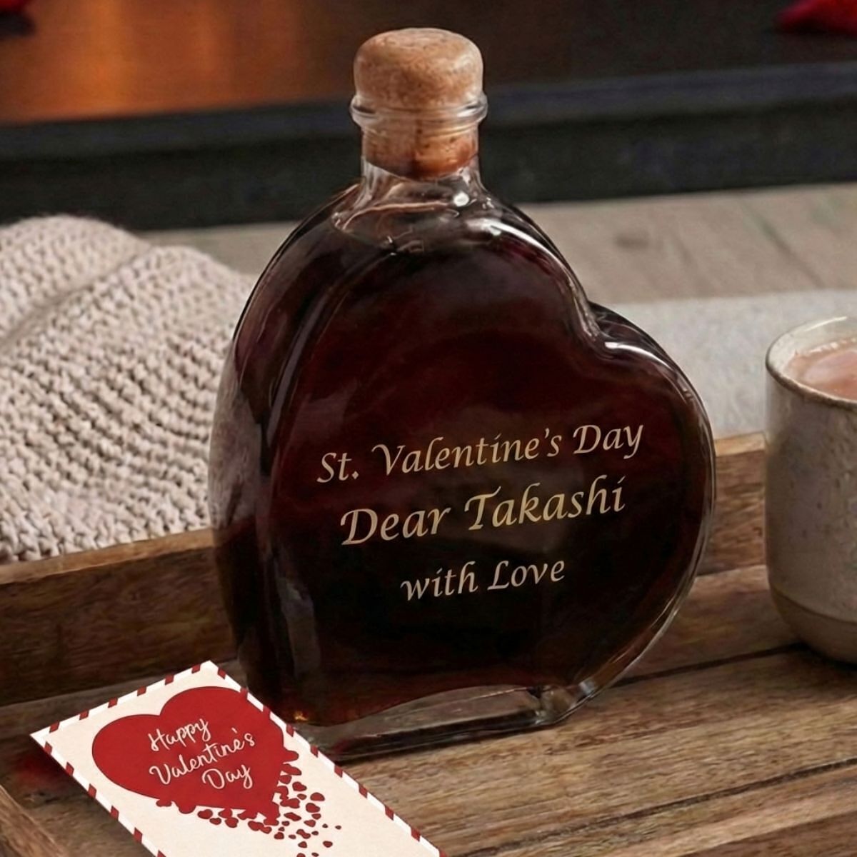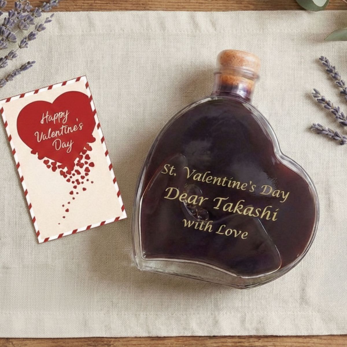 ハート型のかわいいボトル、あま~いワインにあま~いメッセージを入れて。お酒の苦手な彼女も一緒にグラスを傾けて、あま~い時間のプレゼント。