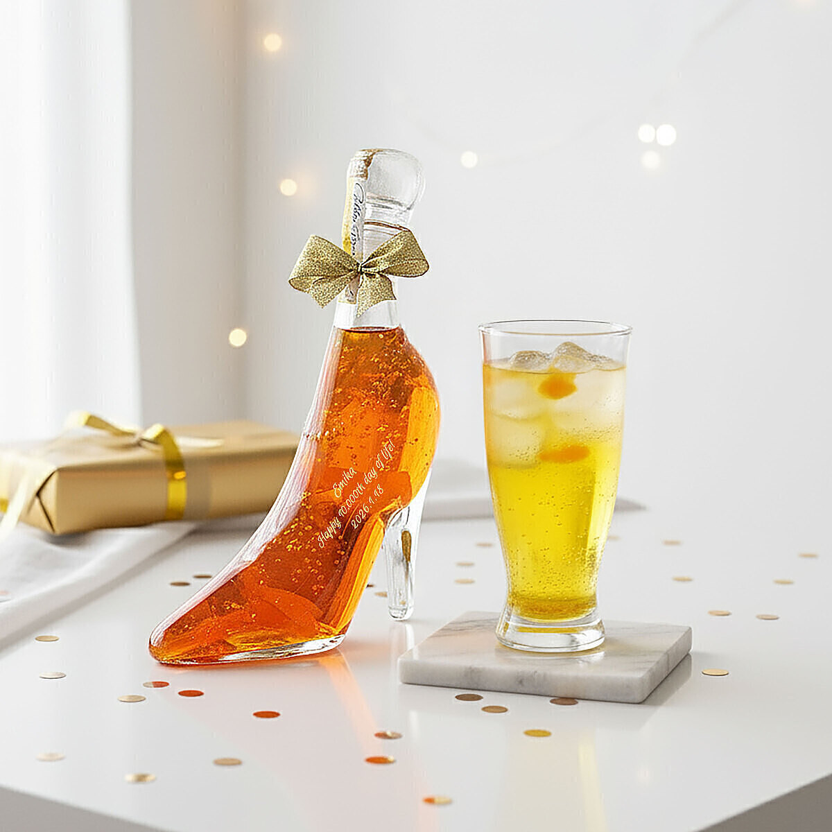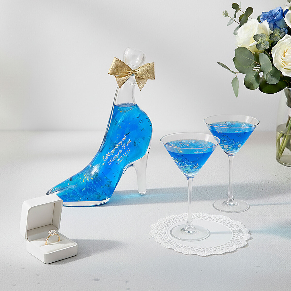 お揃いのフォントでメッセージを入れたグラスを一緒に贈るのも。