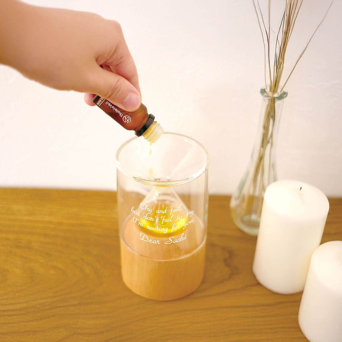※ エッセンシャルオイルは付属しておりません ※ 一部のアロマオイルには対応しておりません。 ※ 価格には基本的なレリーフが含まれております。 ※ イメージにはサンプルのメッセージが入っております。実際にはご希望のメッセージが入ります。