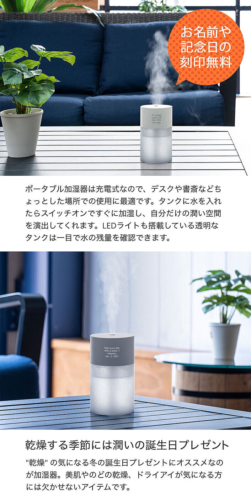 いつでもどこでも手軽に使える充電式の加湿器です。コードレスなので場所を選ばず使えて様々なシーンで大活躍してくれます。