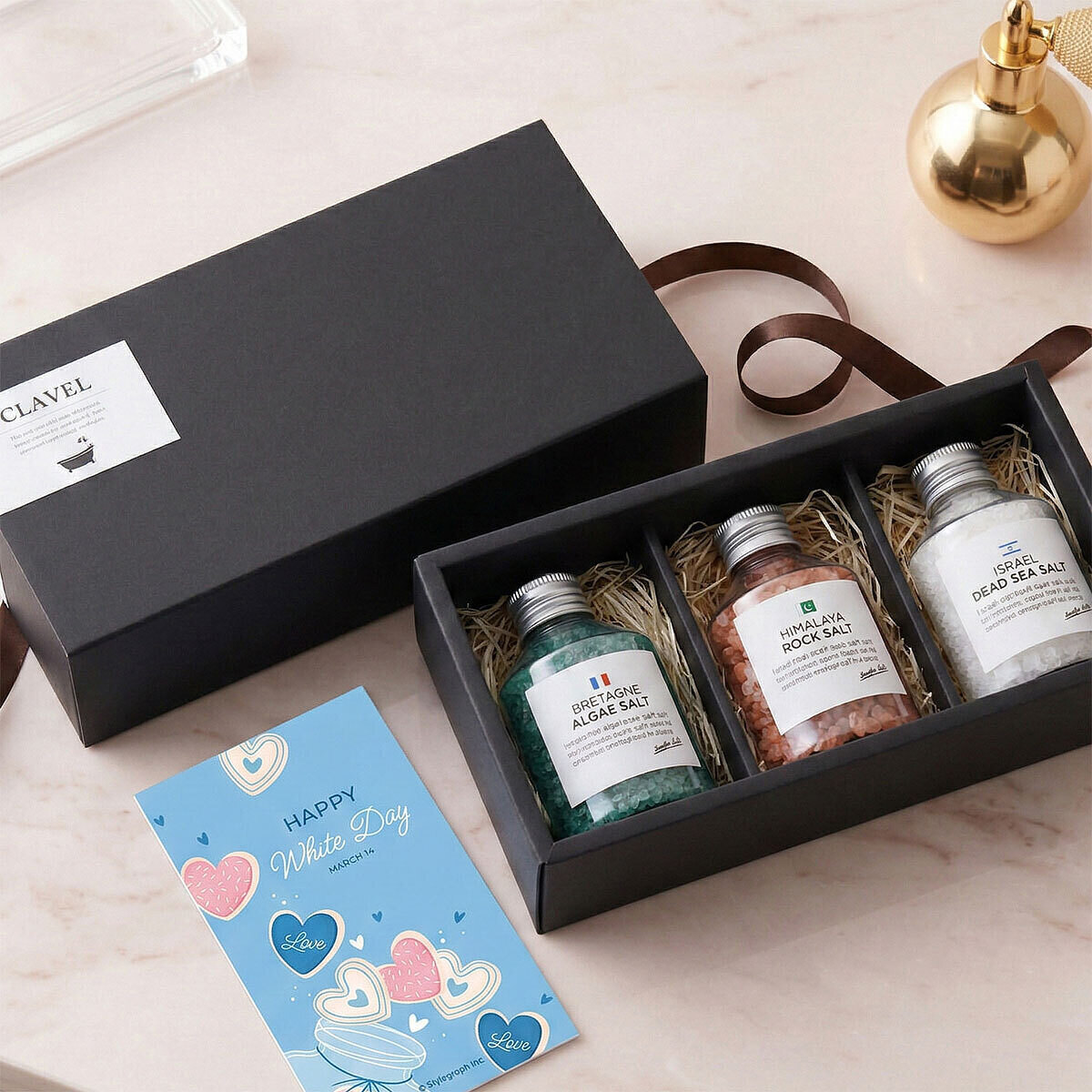 商品 : バスソルト x 3 (ブルターニュアングソルト 190g, ヒマラヤロックソルト 180g, デッドシーソルト 155g, オーストラリアマーメイドソルト 175g, イタリアンソラリウムソルト 180g, ジャパンアコウソルト 190g 各1) 原産国 : フランス (ブルターニュアングソルト), パキスタン (ヒマラヤロックソルト), イスラエル (デッドシーソルト), オーストラリア (オーストラリアマーメイドソルト), イタリア (イタリアンソラリウムソルト), 日本 (ジャパンアコウソルト) ボックス : 約 W229 x H80 x D239 mm 重量 : 約 1445 g