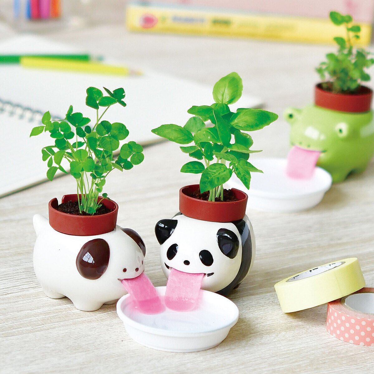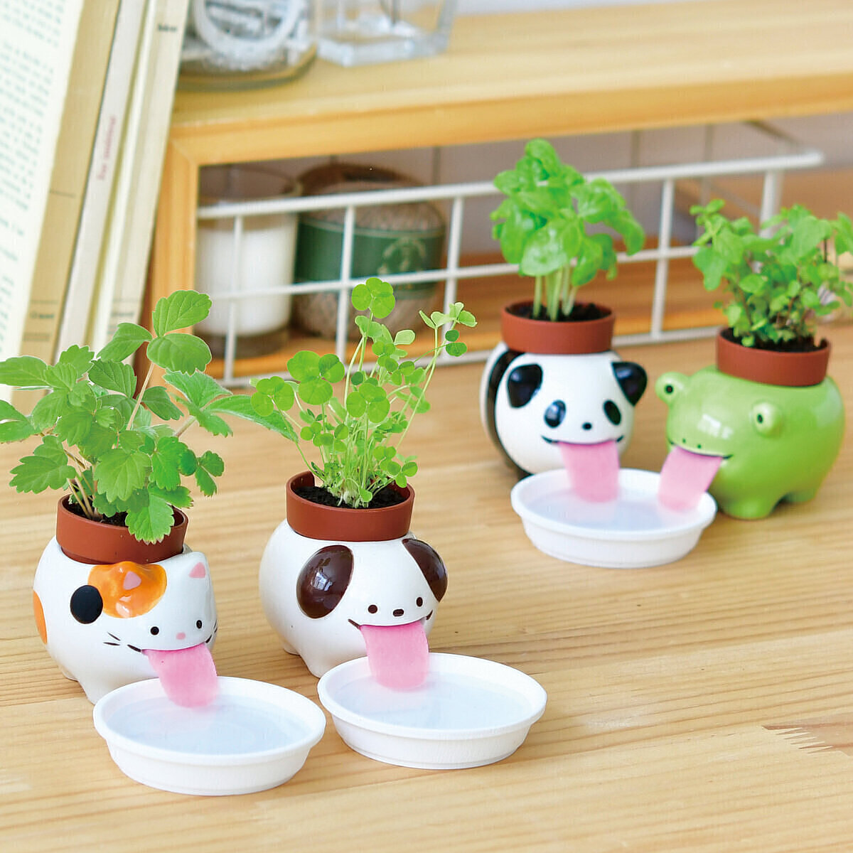 ペロペロとお水を飲んでいる姿が愛らしい栽培キットです。飲んだお水が背中のポットへ行き渡り植物がスクスクと育ちます。付属の水飲みトレイに水がなくなったら、忘れずお水をあげて「ペロポン」と植物を育ててね。