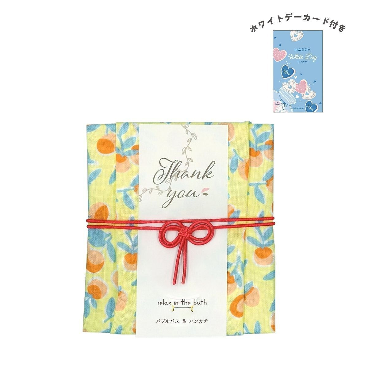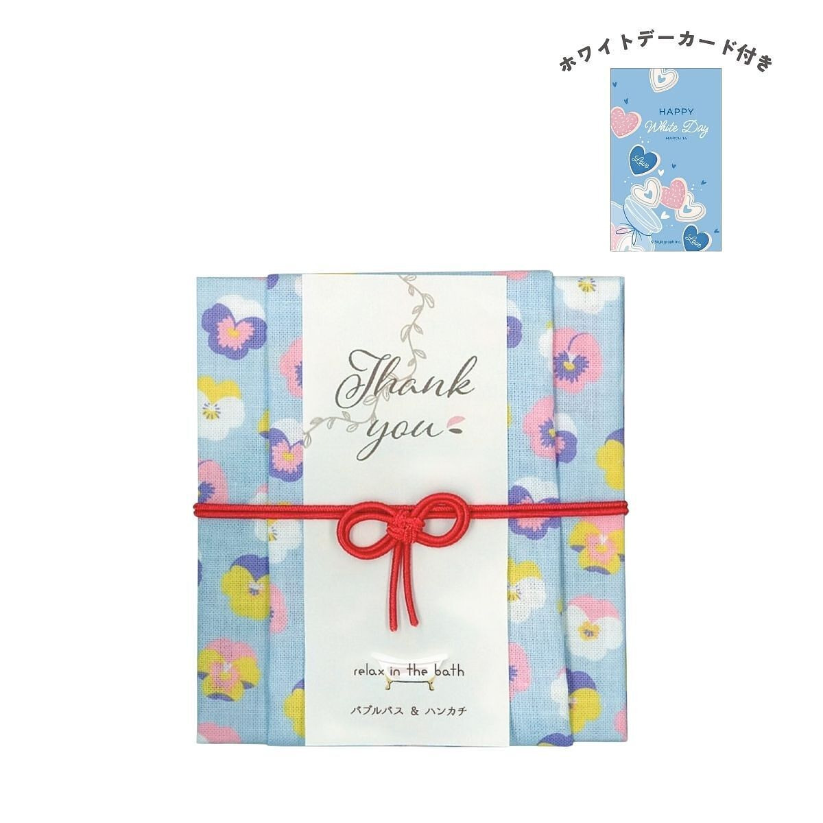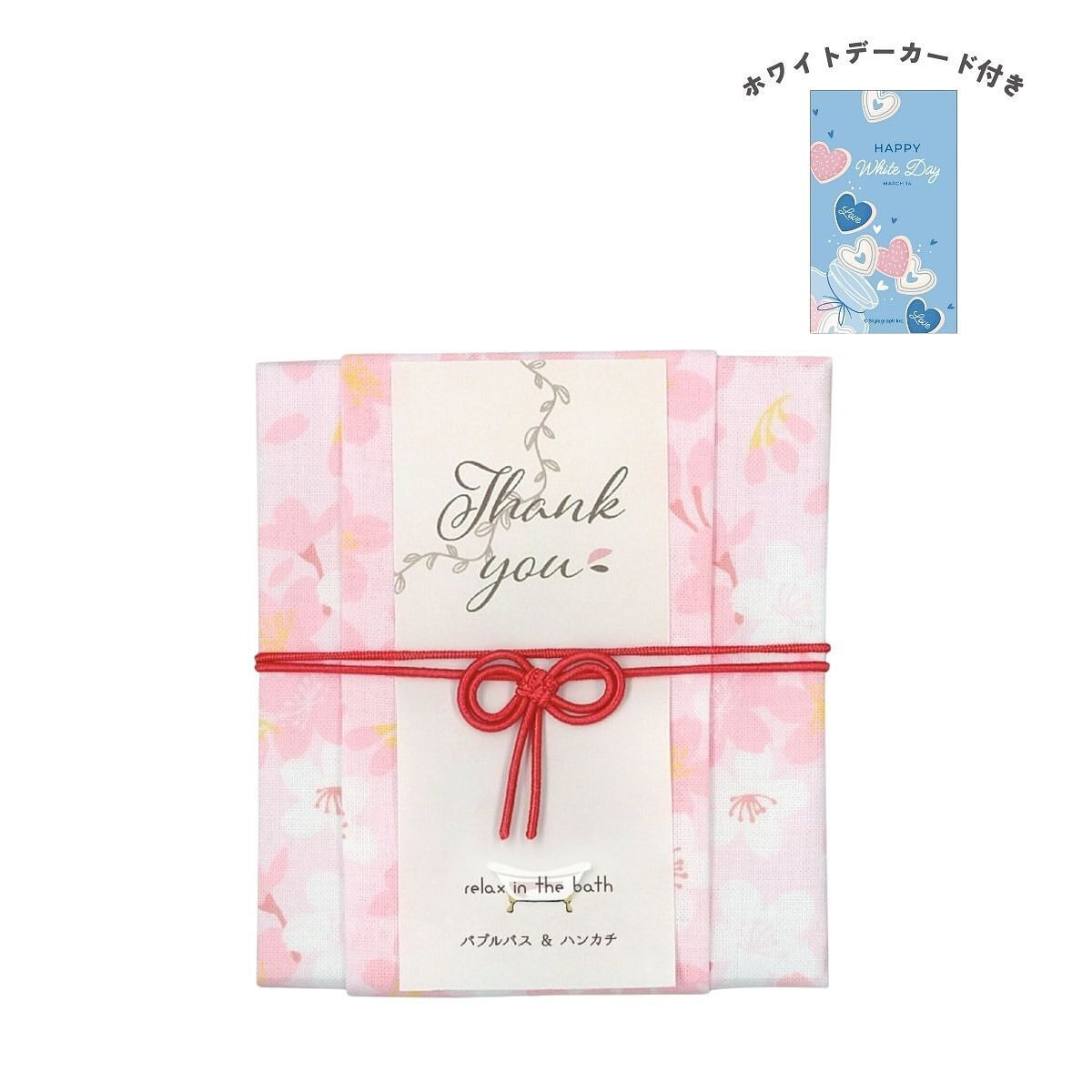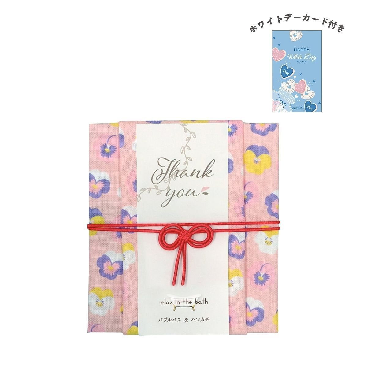 おふろはん ハンカチ&バブルバス フラワーピンク x パッションレッド ホワイトデーカード付