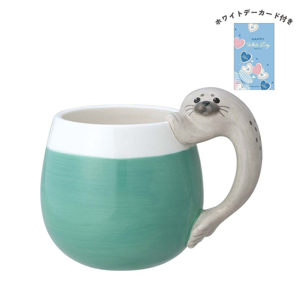 くりくりおめめがかわいいアザラシたちがテーブルウェアになりました☆ カップのフチにつかまるアザラシがハンドルのマグカップです!