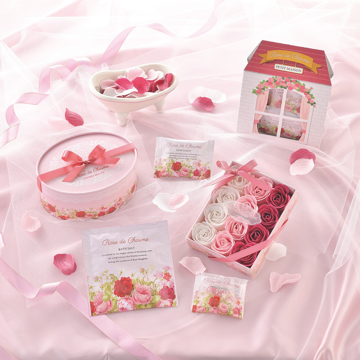 内容 : バスソルト x 1, バスタブレット x 1, フロッシュフルール3P x 1, バスエッセンス x 2, シュシュ x 1 サイズ : 約 W147 x H60 x D116 mm 重量 : 約 160 g MADE IN JAPAN, MADE IN CHINA (シュシュ)