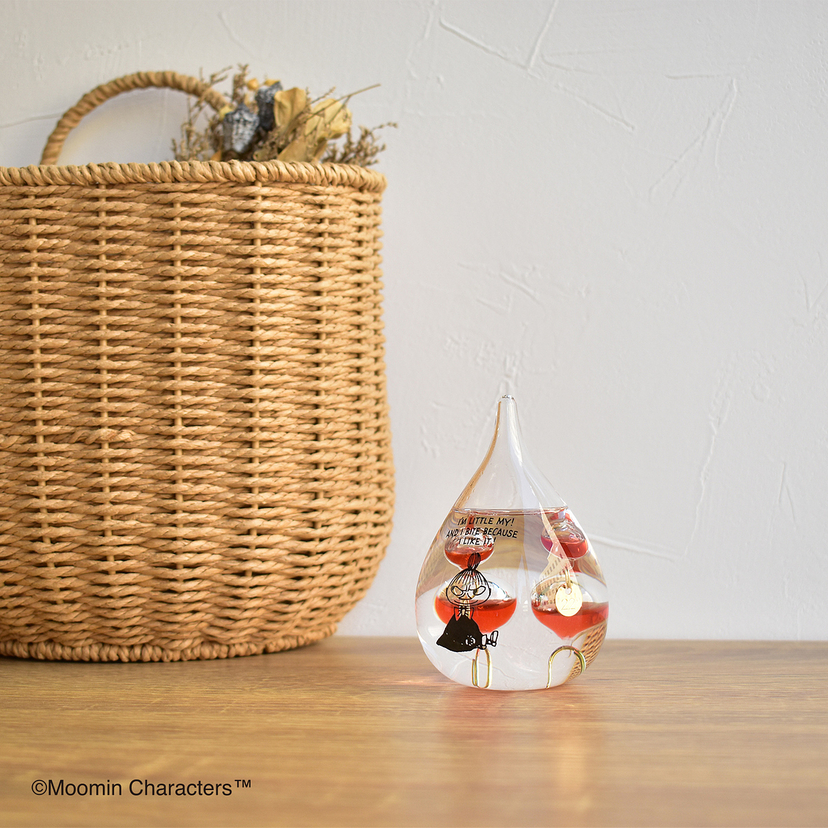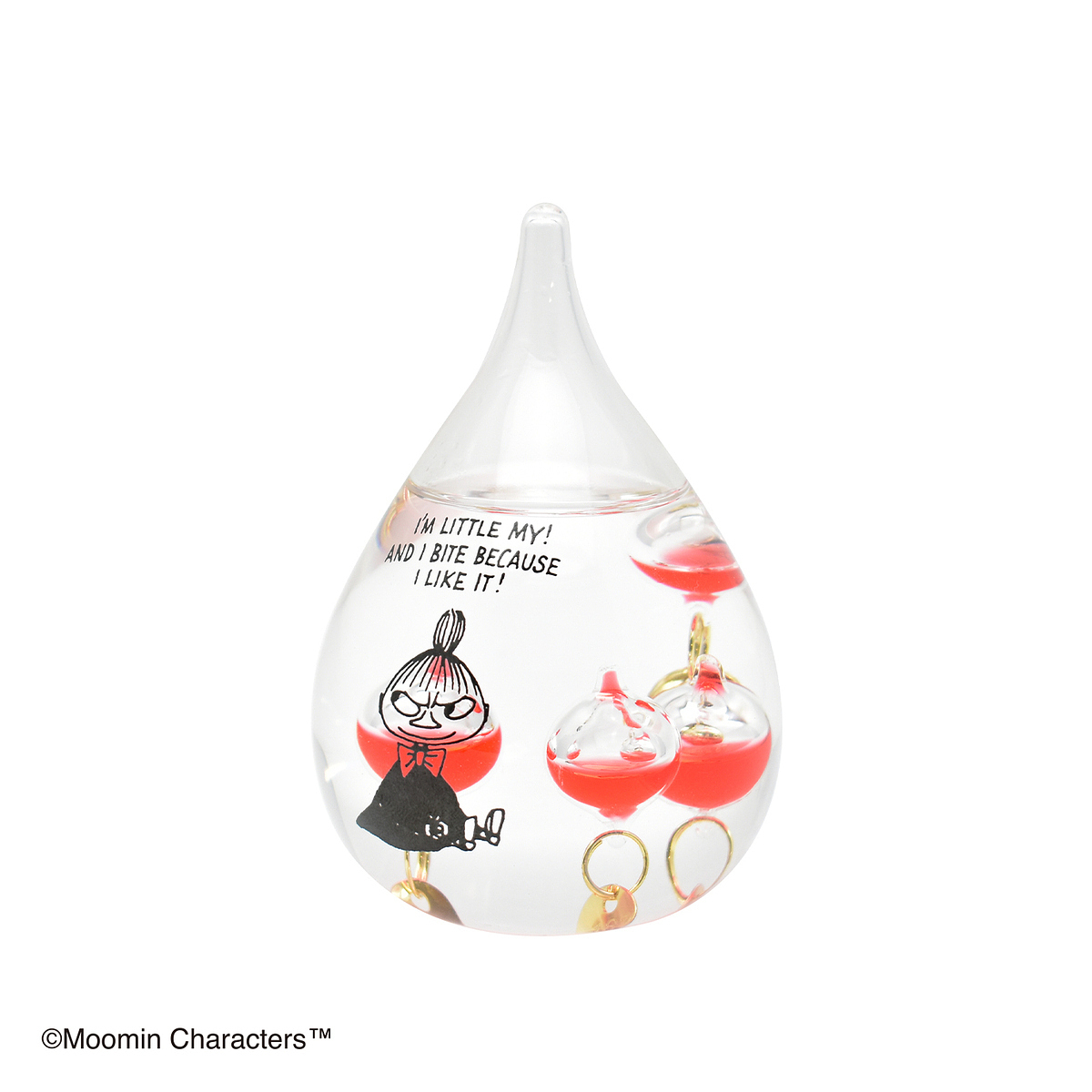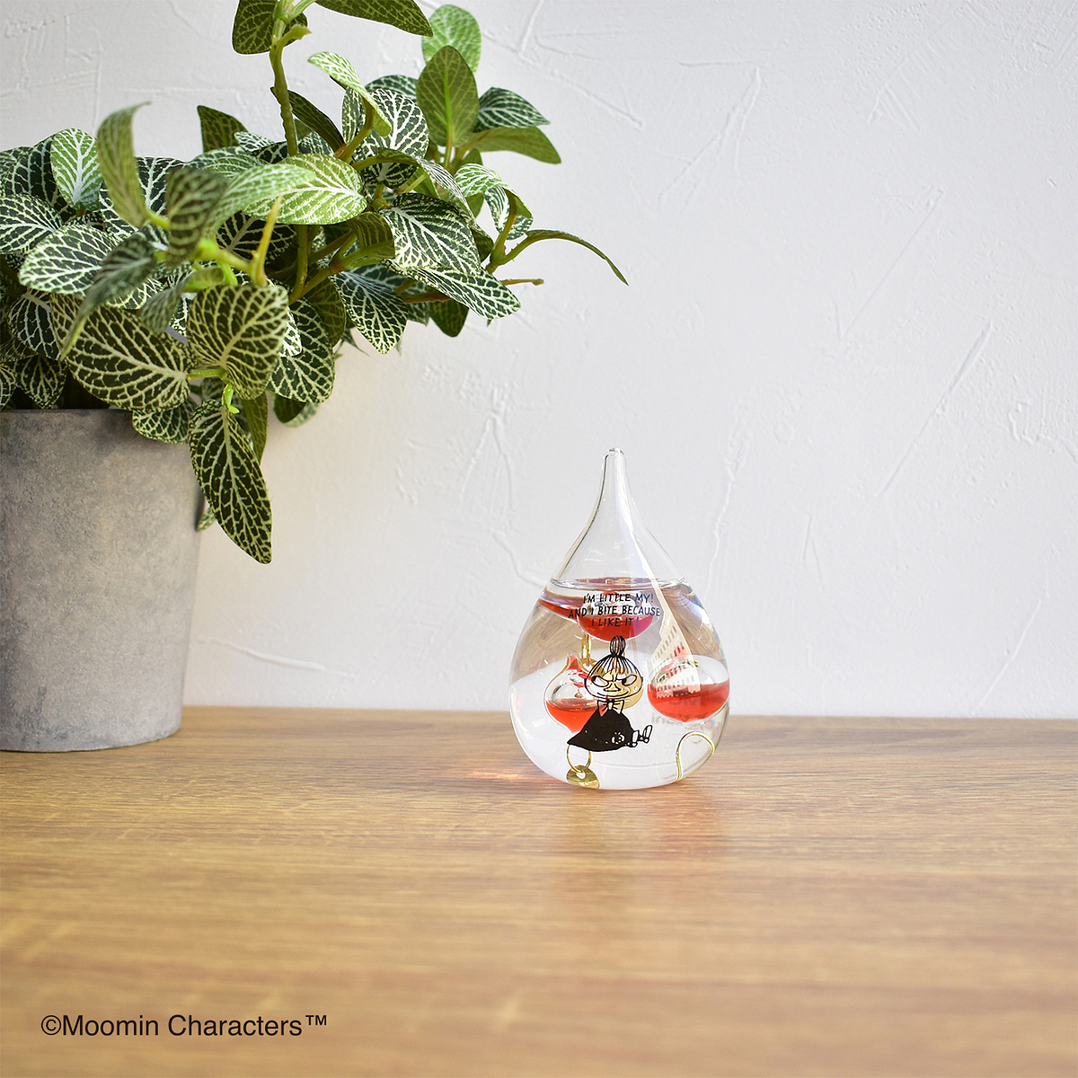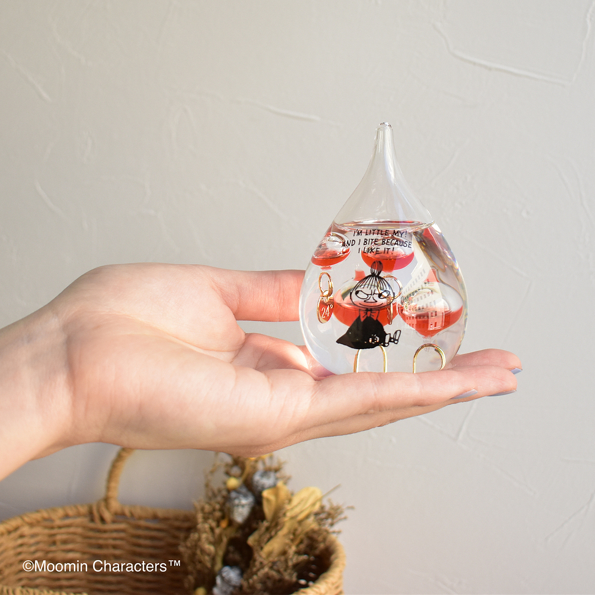 物理学者のガリレオ・ガリレイが発見した「液体の比重が気温によって変化する」原理を用いて作られた温度計。ガリレオ温度計とも呼ばれます。実際の気温は上層部に浮いているガラス球体の最下段のガラス球体に付いているプレートで読み取ります。 お部屋に置きやすいコンパクトなサイズ感で、ギフトにもぴったりです。ムーミン、リトルミイファンはもちろん、一味違うお洒落なインテリアをお探しの方、科学の不思議に興味を持つ年頃のお子様にもお勧めです。