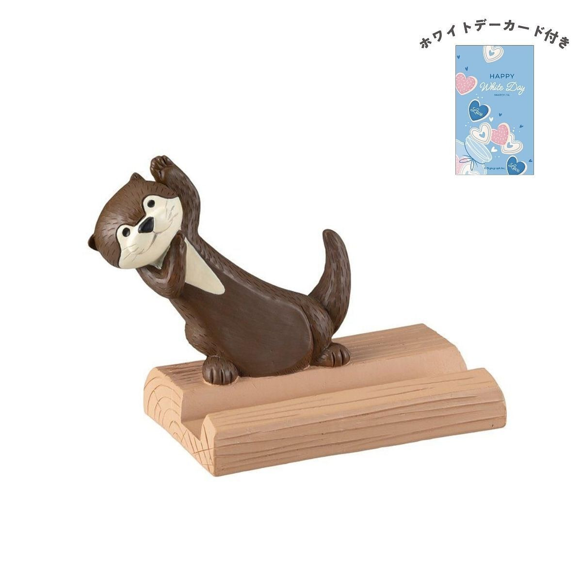 カワウソカフェ ひょっこりカワウソスマホスタンド ラテ ホワイトデーカード付