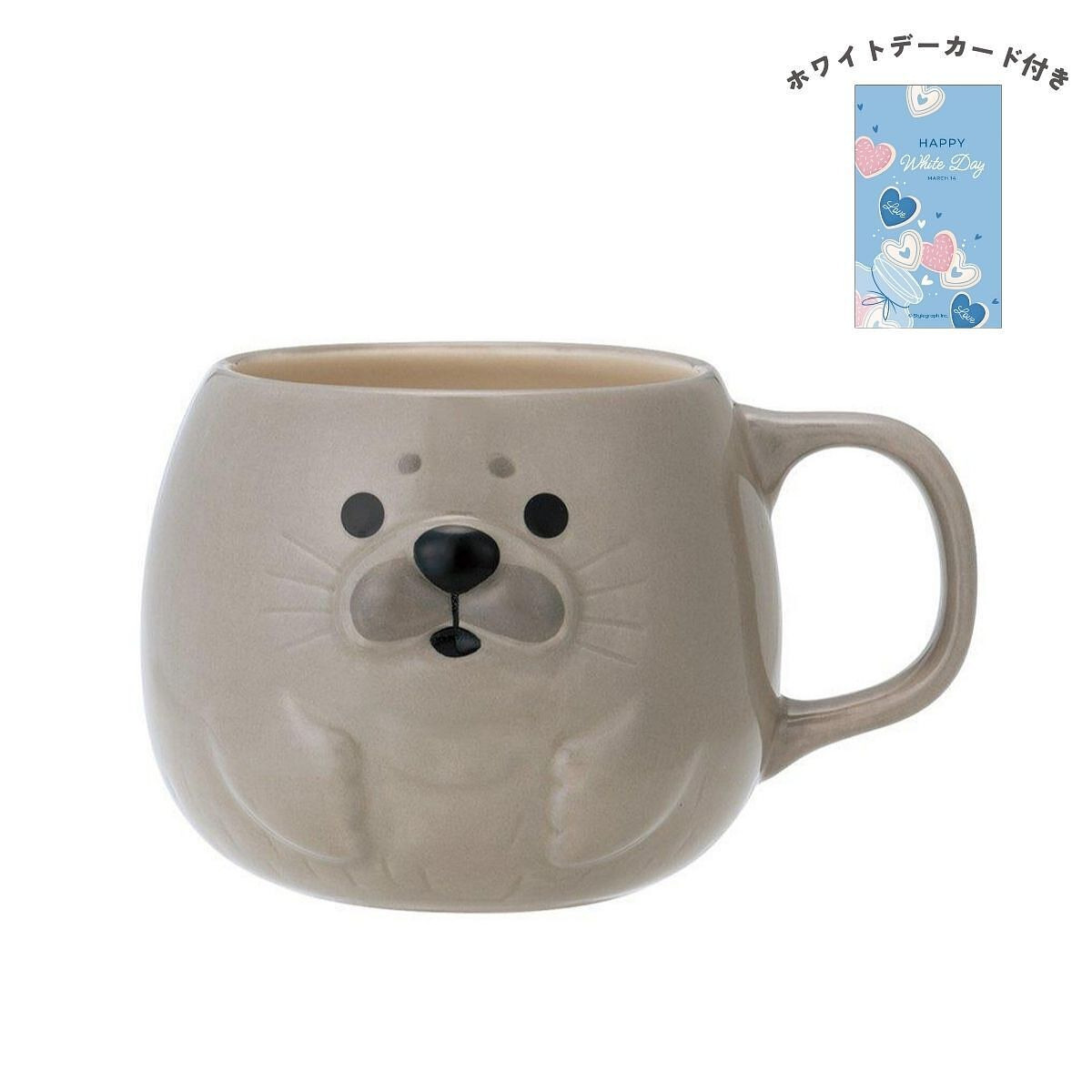 海で人気の動物立ちがぽってり丸くてかわいいマグになりました。ぽっこりしたおかおがむっちりキュート、後ろ姿の小さなしっぽも見逃せません。
