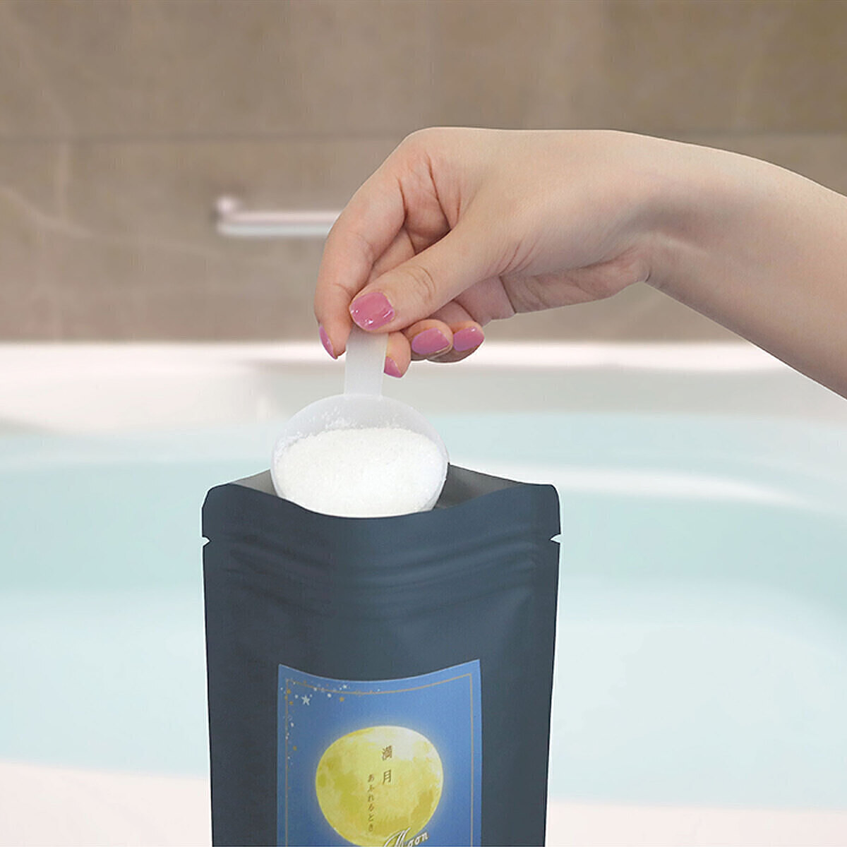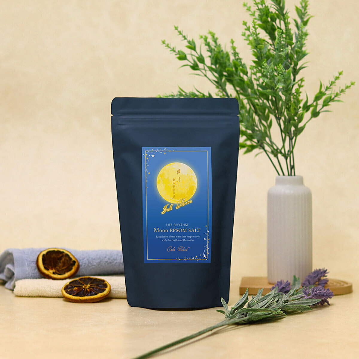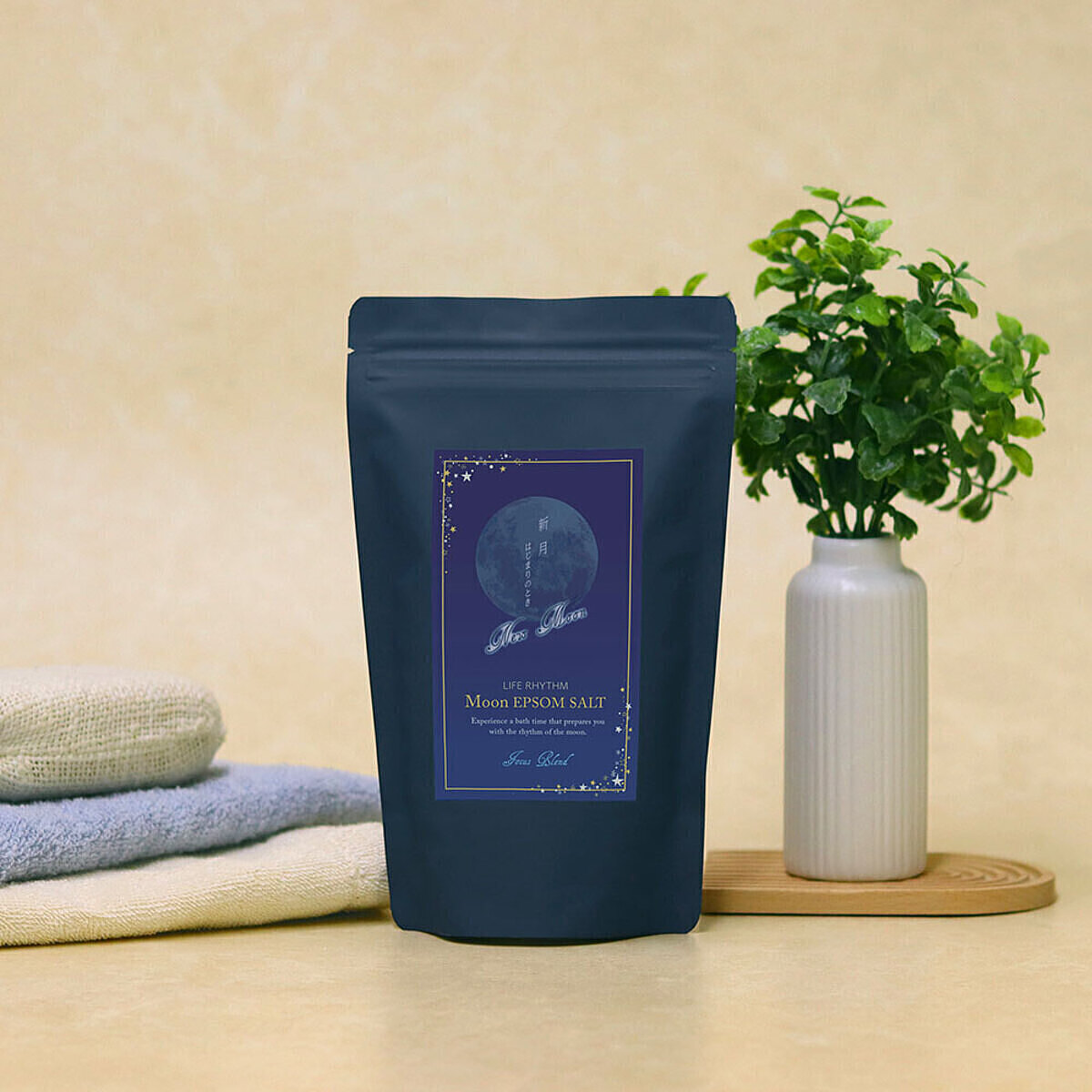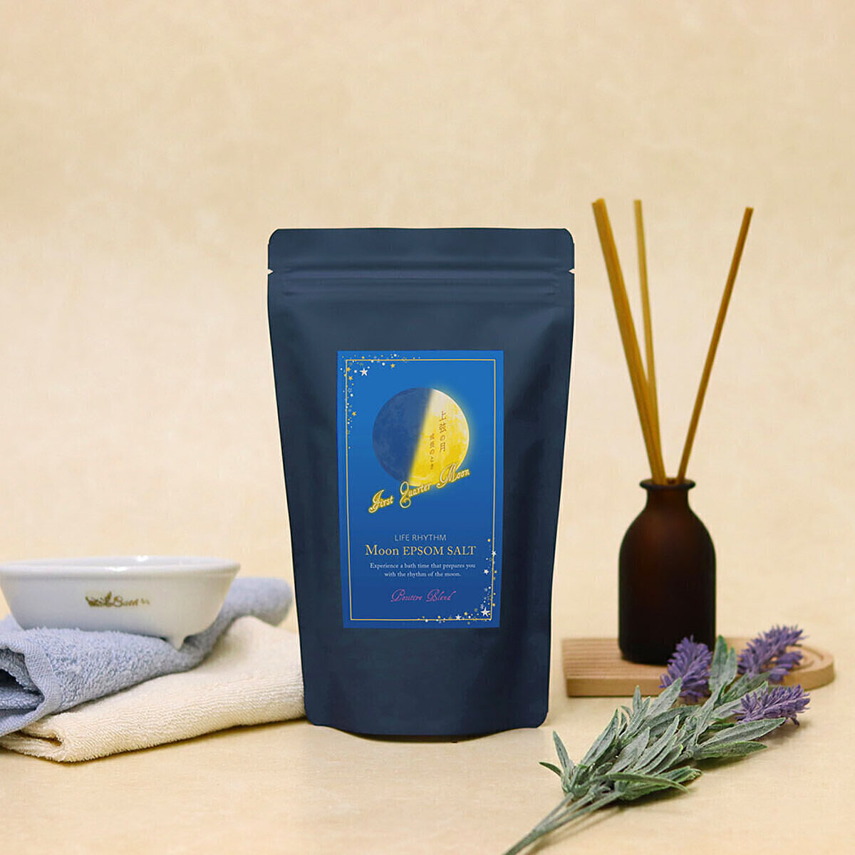 天然精油のブレンドオイルで香りをつけたエプソムソルト。ハーバルでウッディな森林系の香りです。