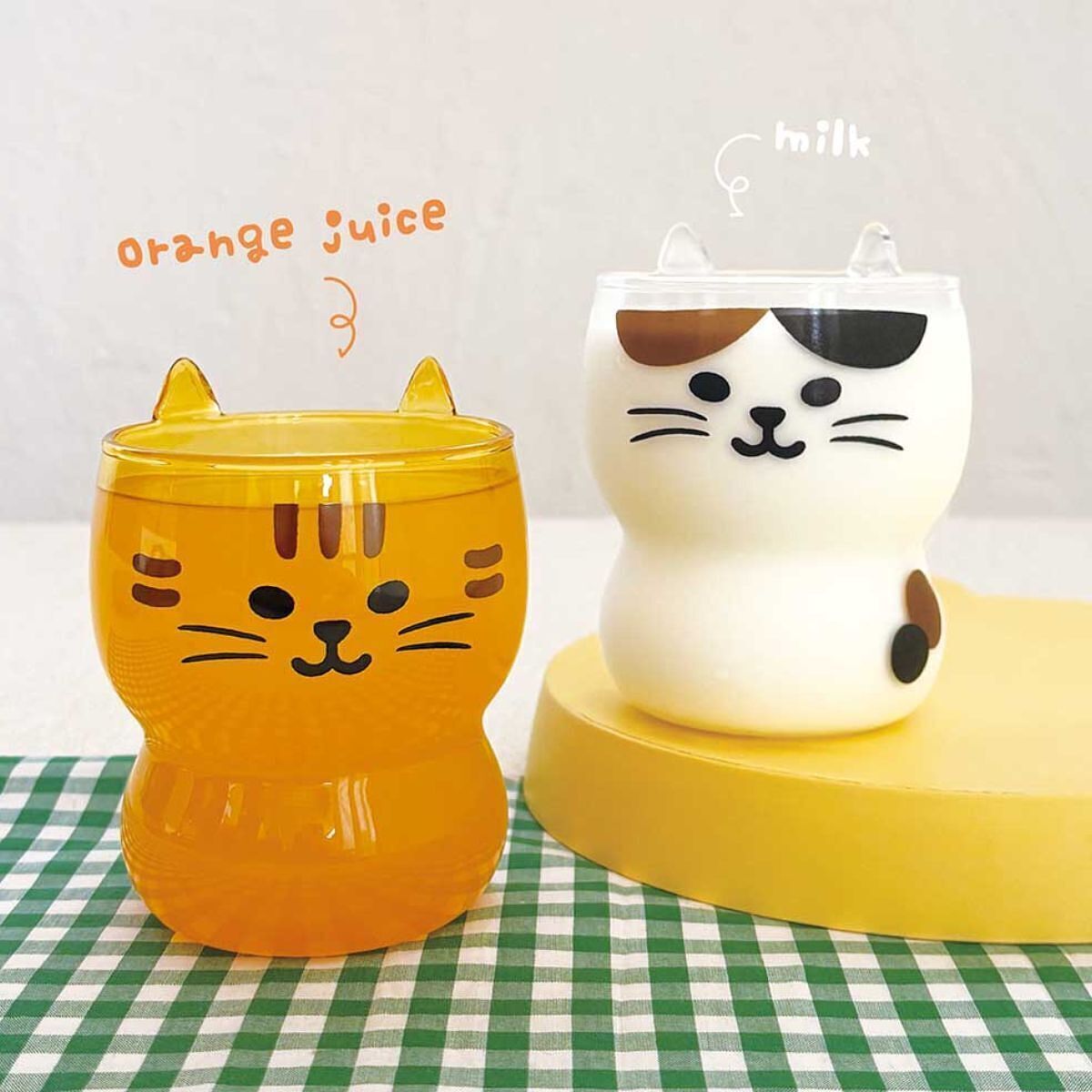 ちょこんとついた小さなミミがキュートなネコのグラスができました。くびれがあって持ちやすいです。
