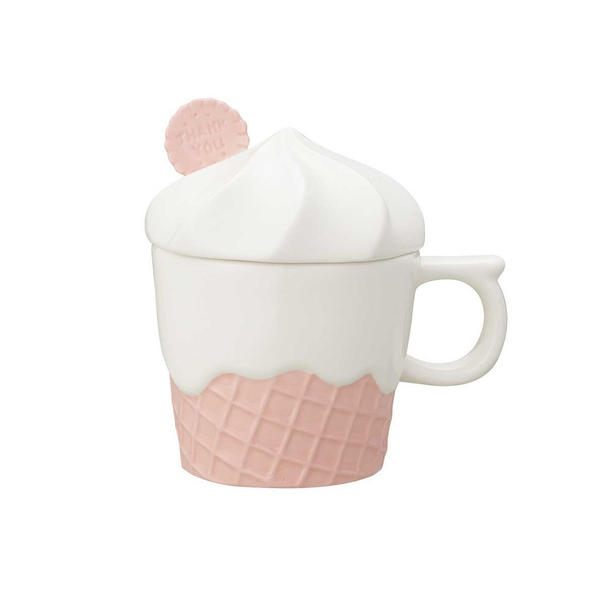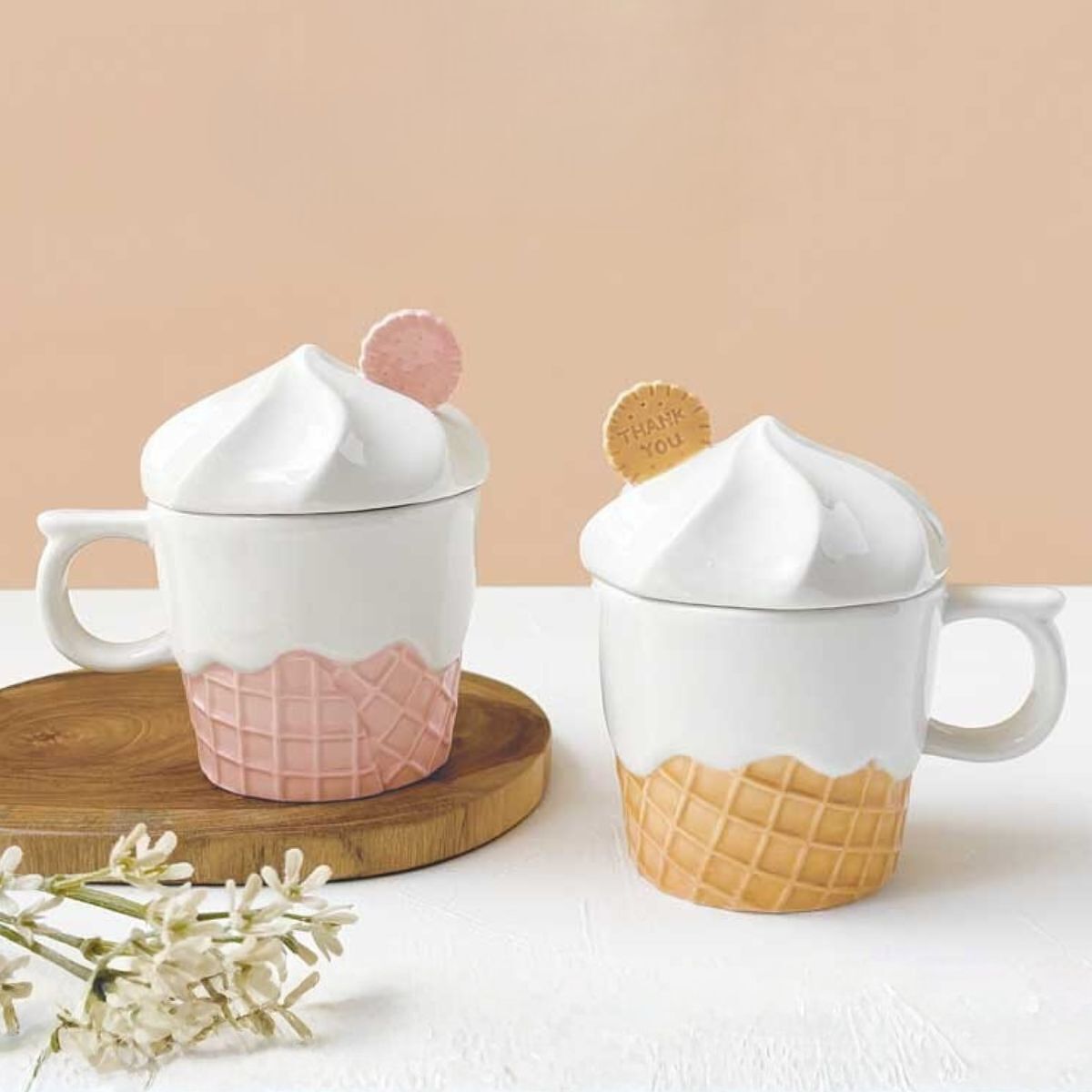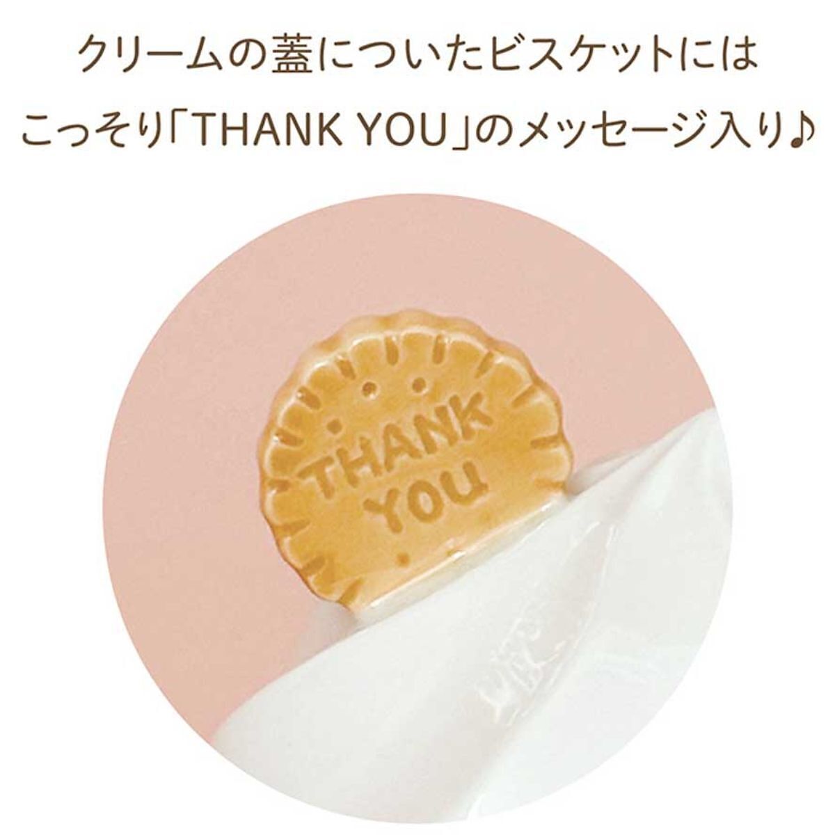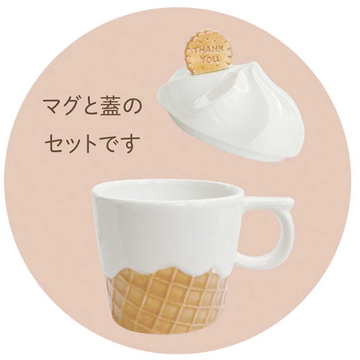ソフトクリームのようなふんわり可愛いマグカップ。ビスケットにはさりげなくメッセージが入っているので、感謝を伝えるプレゼントにもおすすめです。