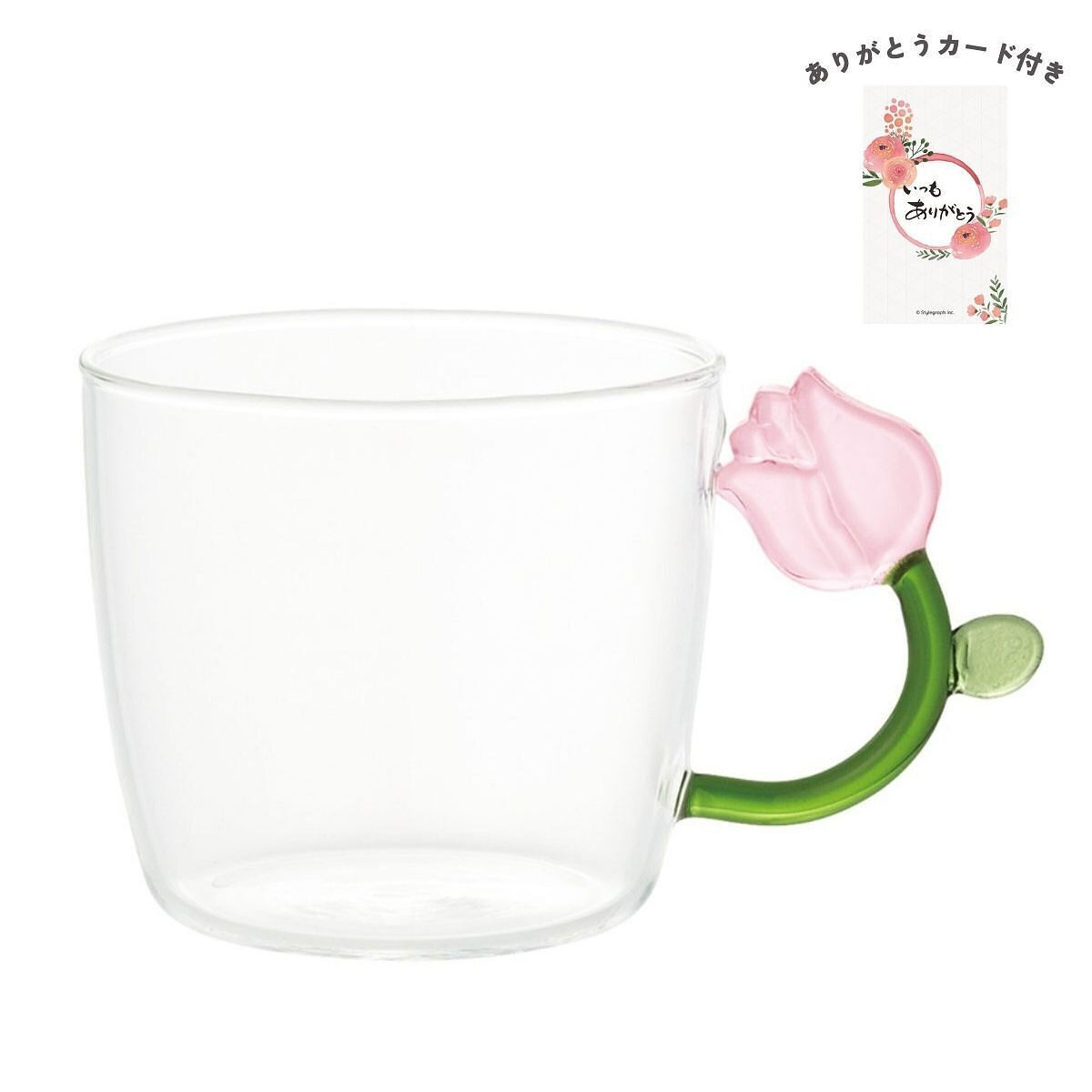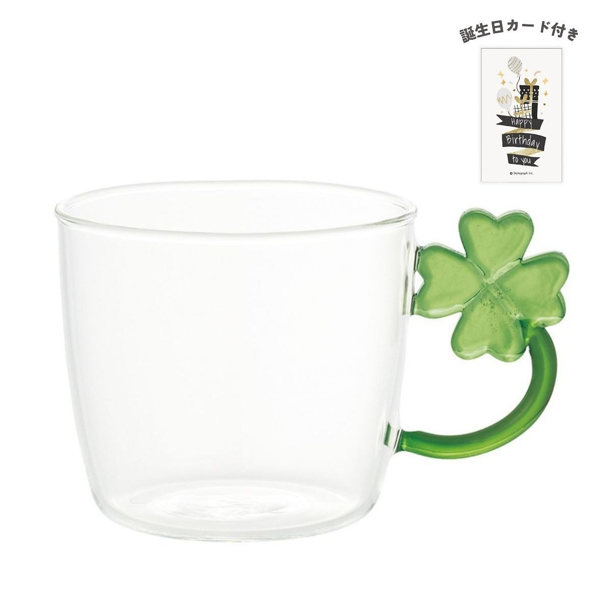 クローバーが持ち手になったマググラス。 耐熱ガラス製なのでホットドリンクもOK♪ 電子レンジにも使用できます。