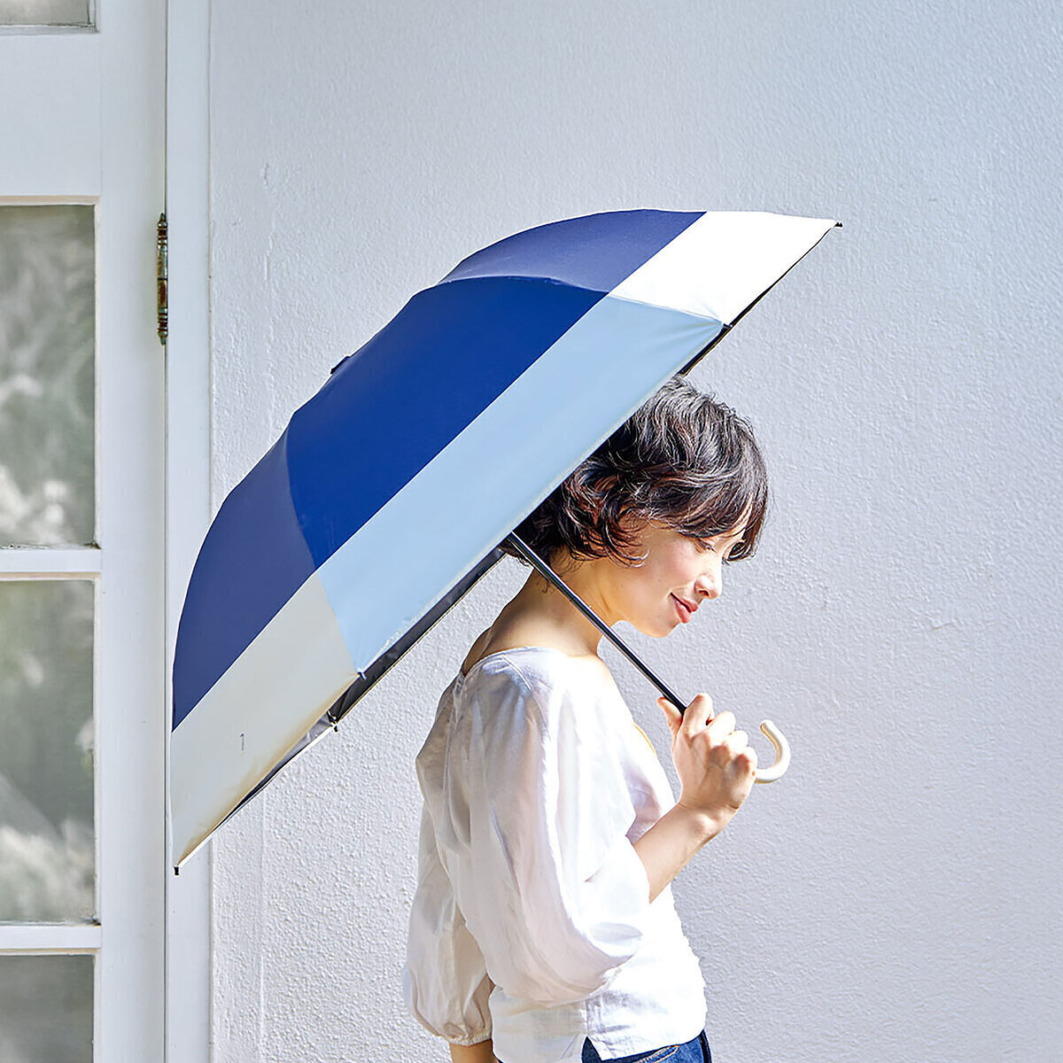 ツートーン 折りたたみ傘 ネイビー