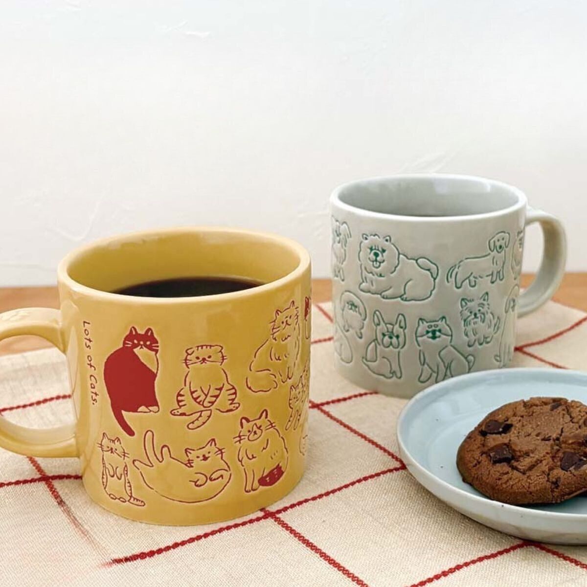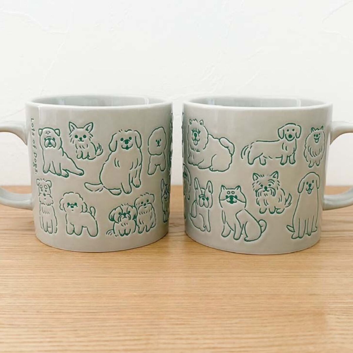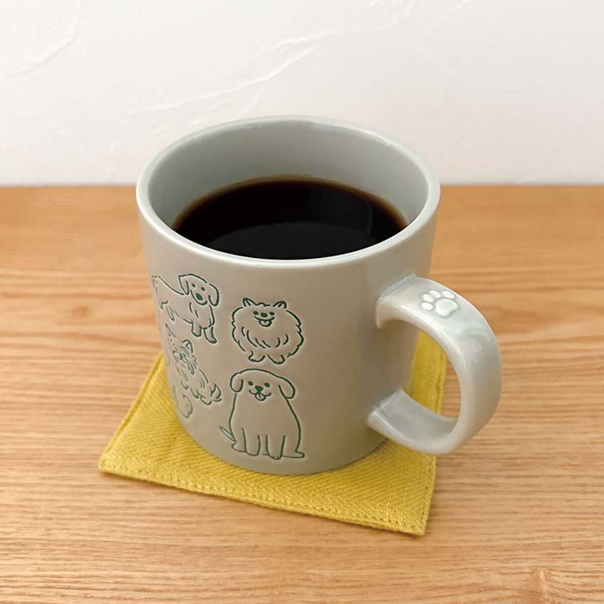 うちの子いるかな・・・? とついついさがしちゃう撥水絵付がポイントのマグカップ。愛犬家さんにおすすめです♪ ハンドル部分には半立体の肉球がデザインされています。 電子レンジに対応しています。