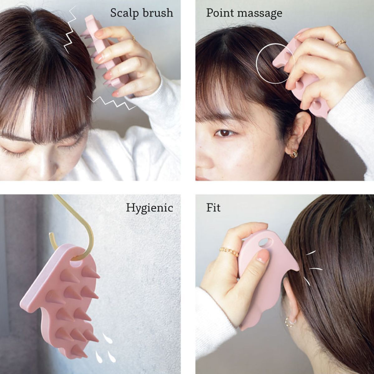 猫のシェイプに癒されるポイントマッサージャー付きのスカルプブラシです。