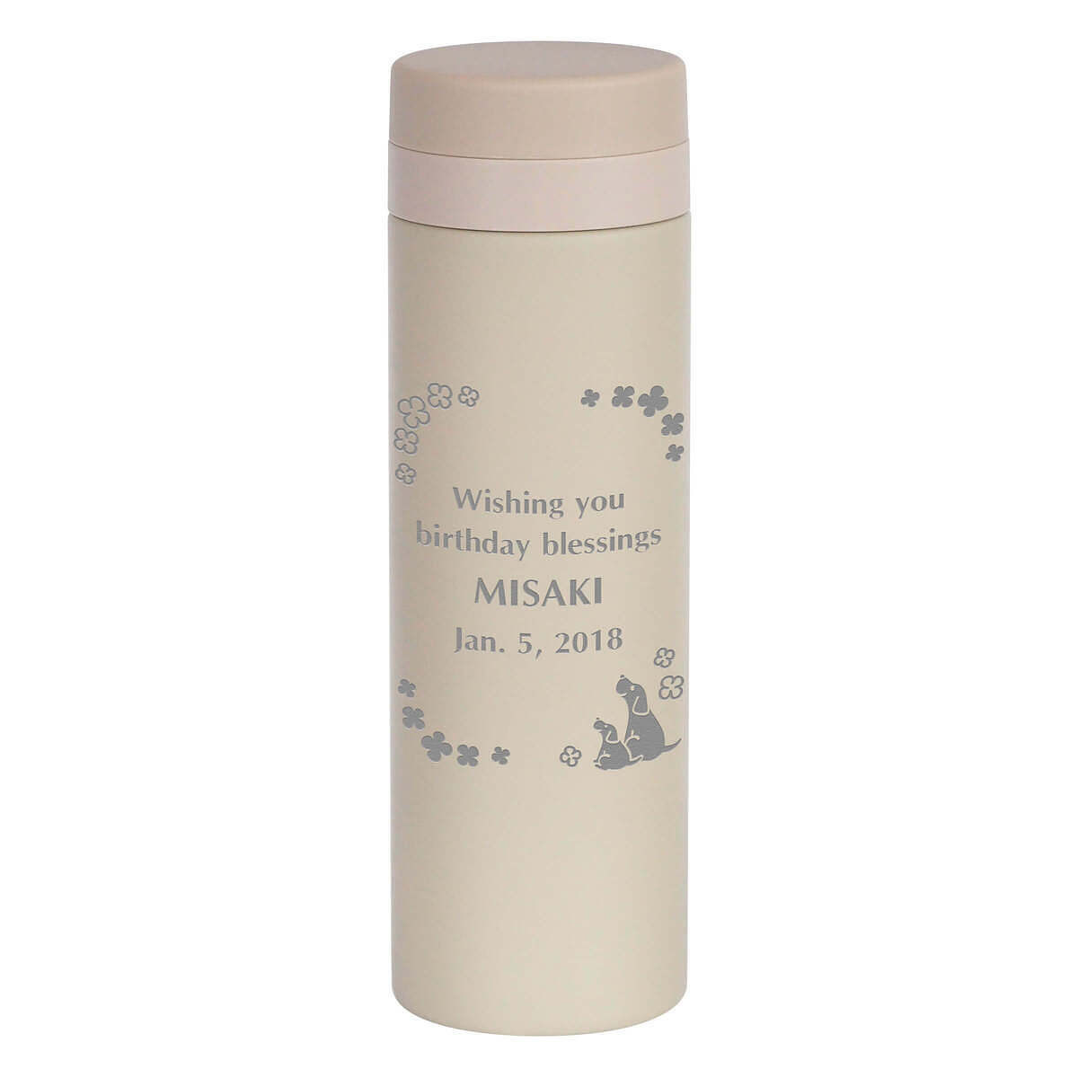 中学校への入学祝や、高校への入学祝に名前入りの水筒を。デザインの中にさりげなく名前が入るオリジナルのマグボトル。クラスに馴染むまでのお弁当の時間も、メッセージ入りの水筒で元気を出して乗り切って。