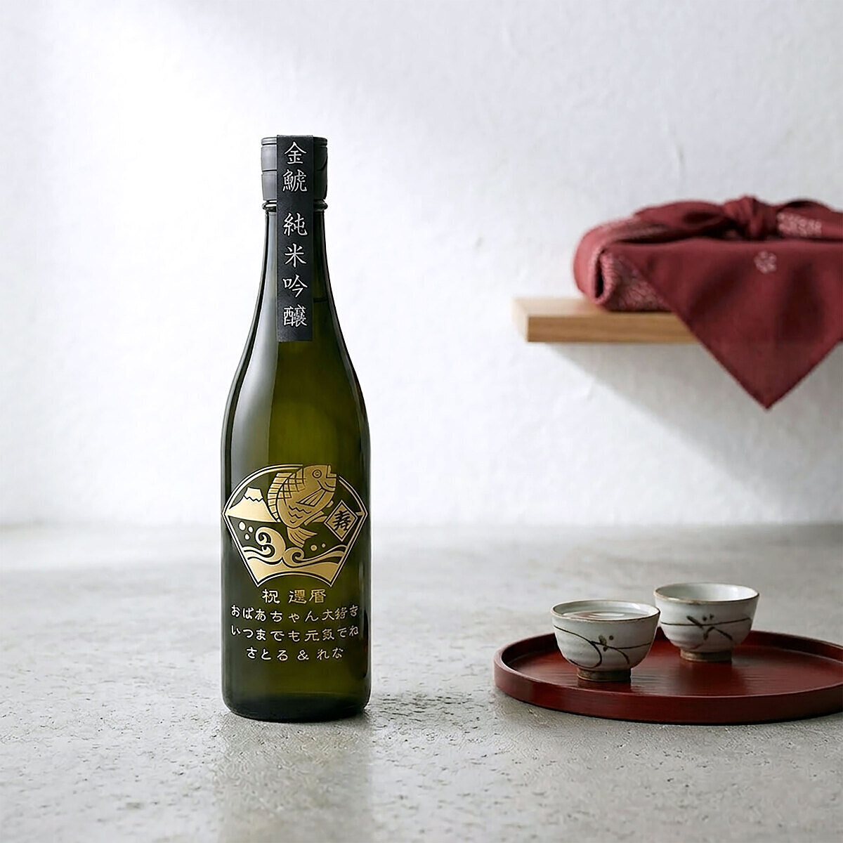 ガラスに彫りこまれ、ゴールドにカラーリングされたオリジナルデザインはラベルにはない高級感とインパクトがあります。日本酒派の彼女や女友達にもカワイイデザインを選べば本格的でもカワイイ日本酒をプレゼントできます。